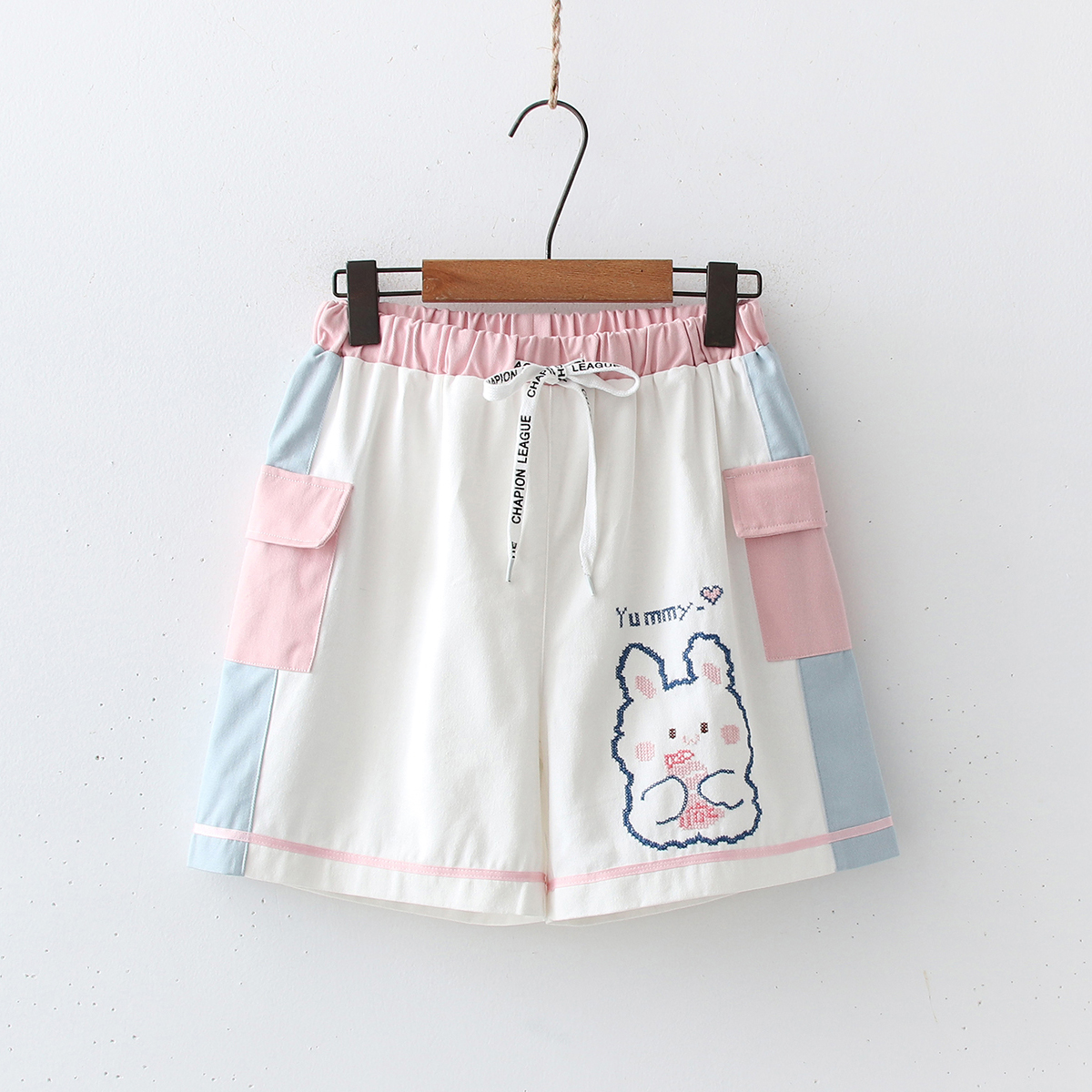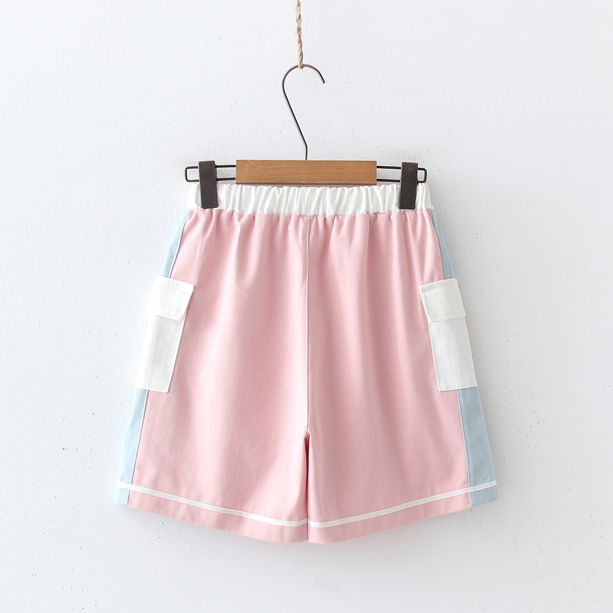 Cute Pocket Double Breasted Lantern Bib Shorts