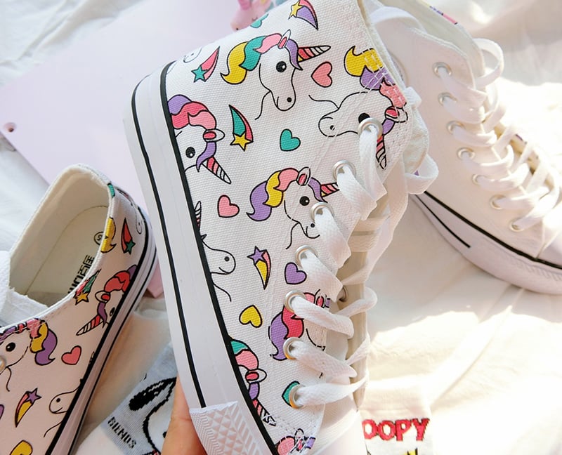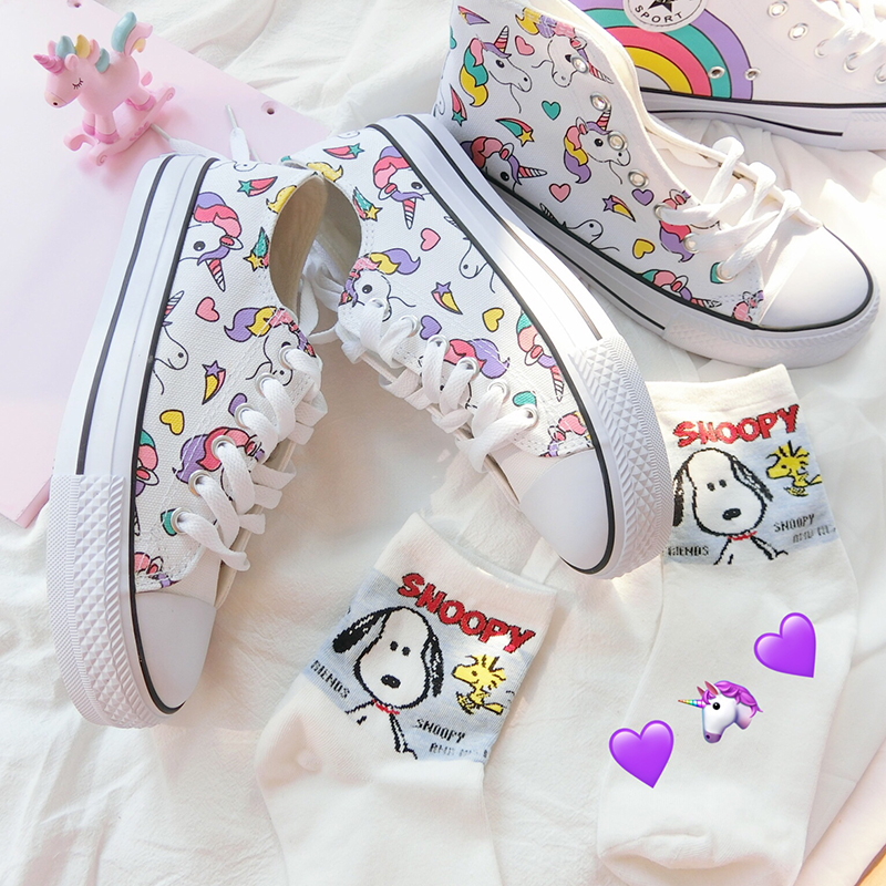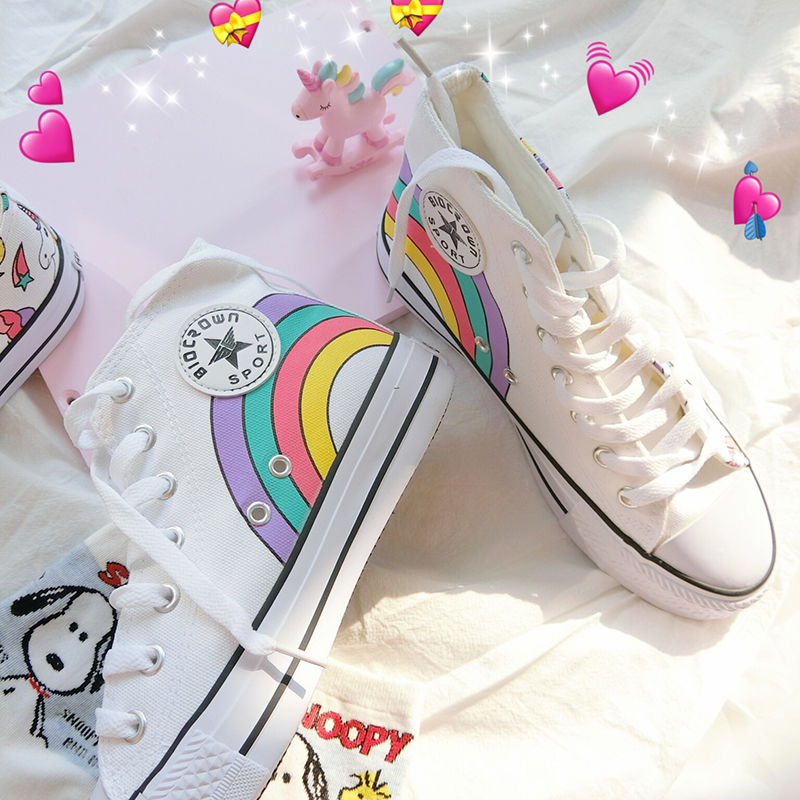 Harajuku cute rainbow unicorn hand-painted shoes