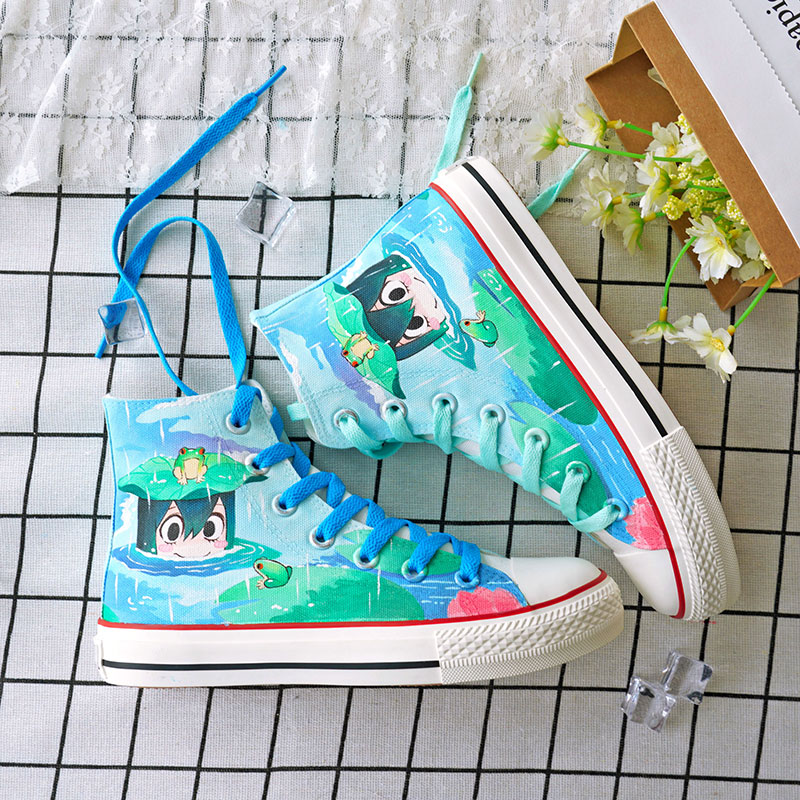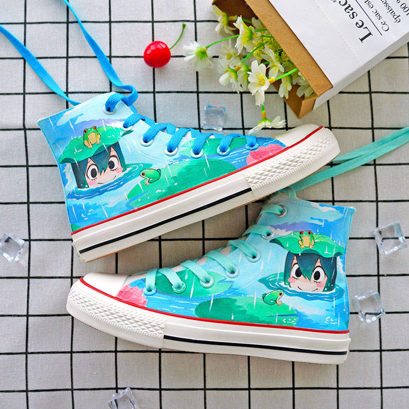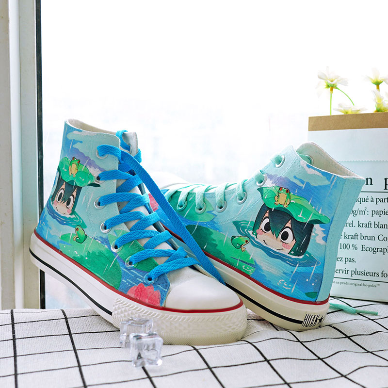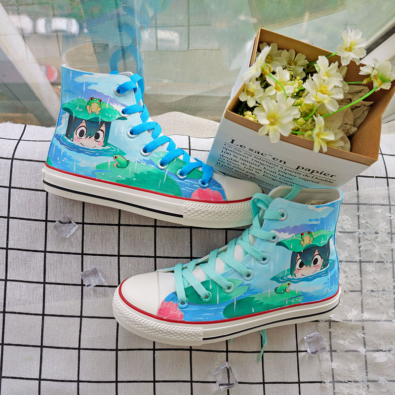 Harajuku's new frog lotus leaf pond light rain hand-painted shoes