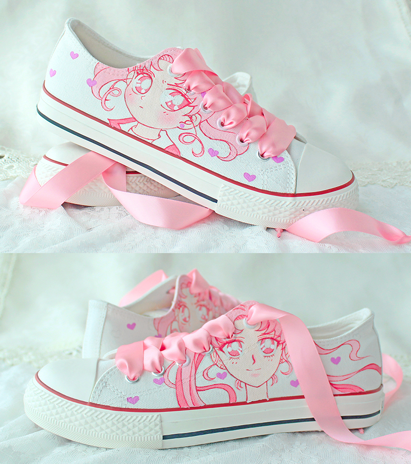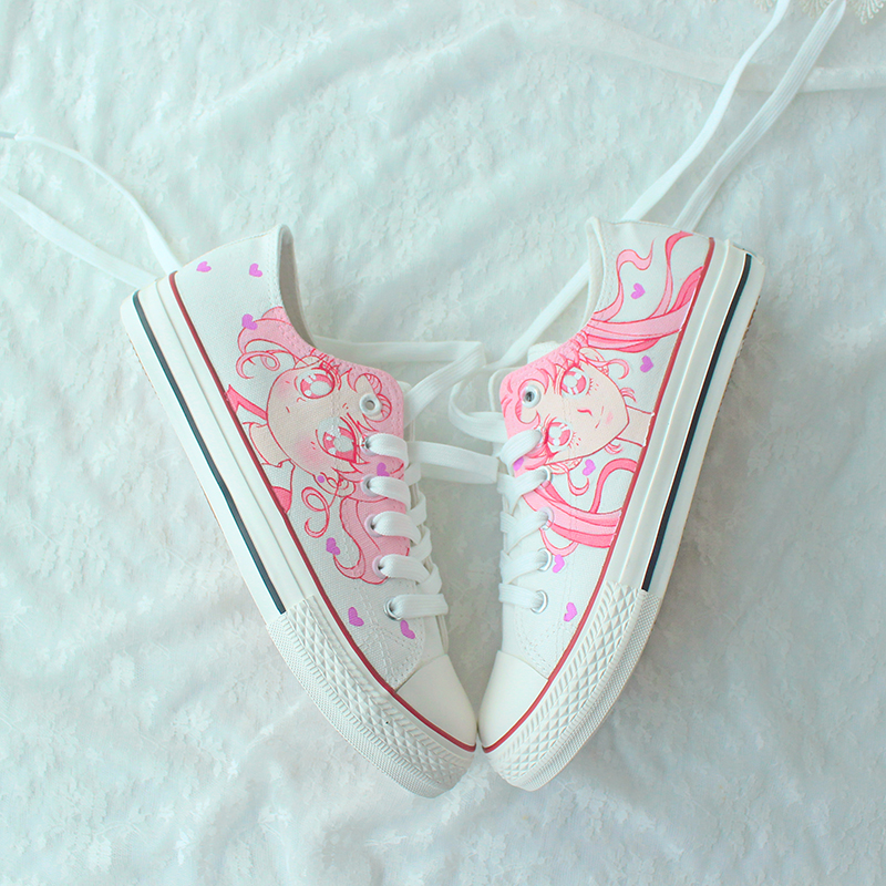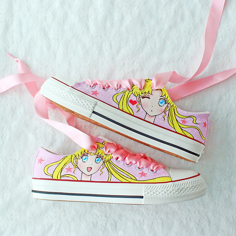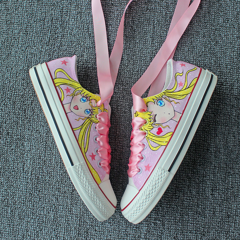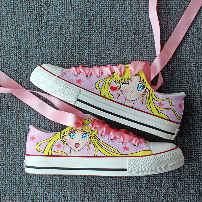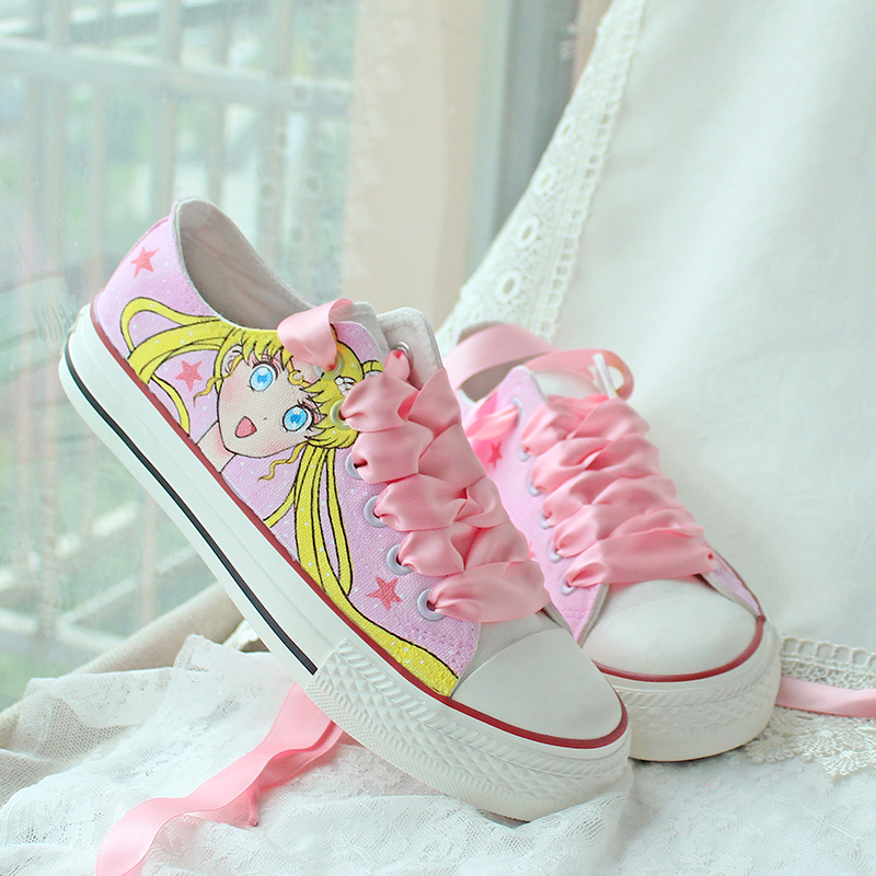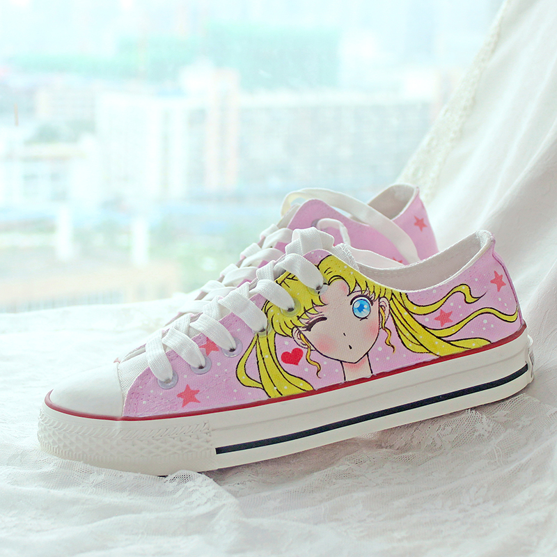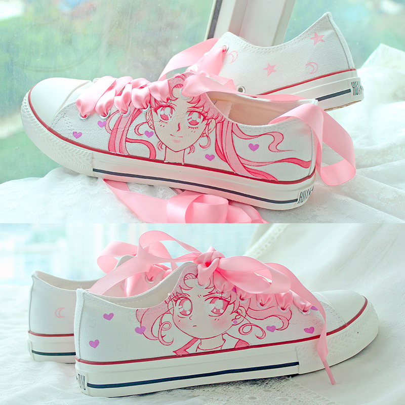 Cute Moon Hare Graffiti Board Sailor Moon Canvas Shoes Hand-painted Shoes