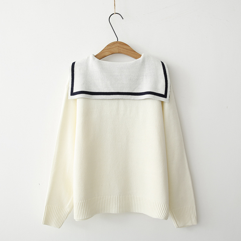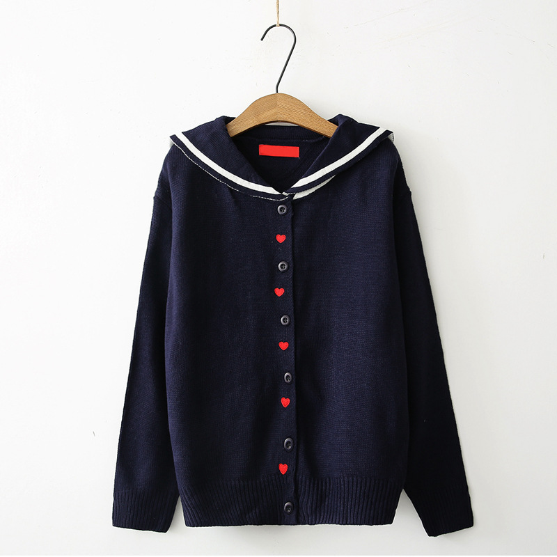 New love embroidery navy collar loose cardigan sweater