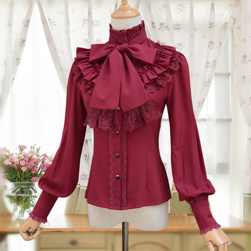New vintage slim high collar blouses