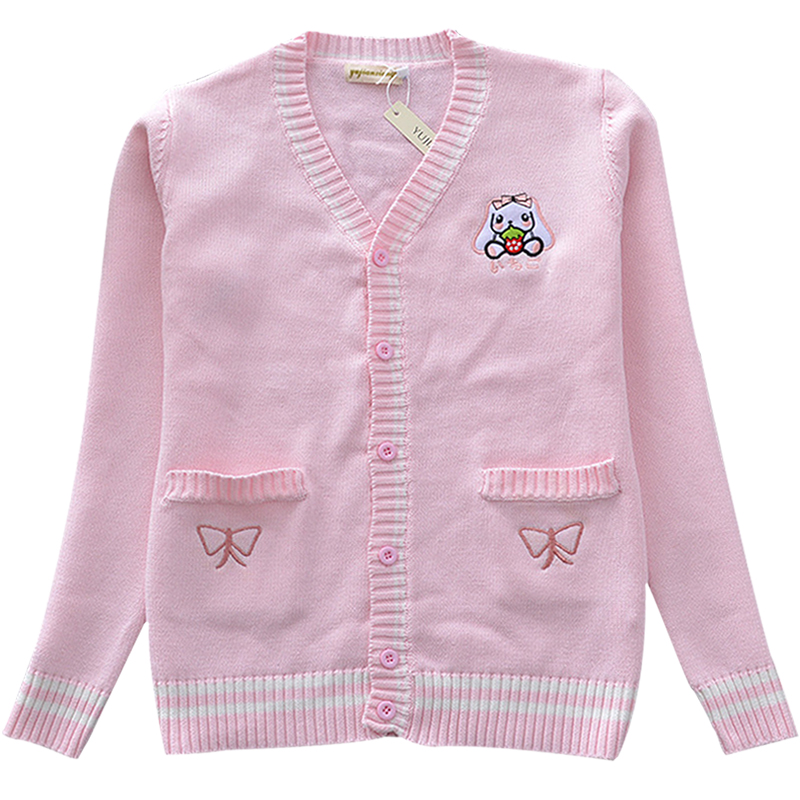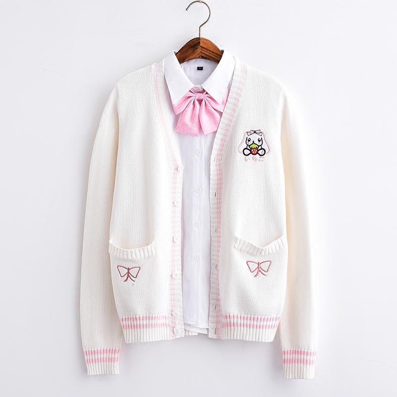 Sweet Cute Bunny Embroidery JK Uniform Knit Sweater