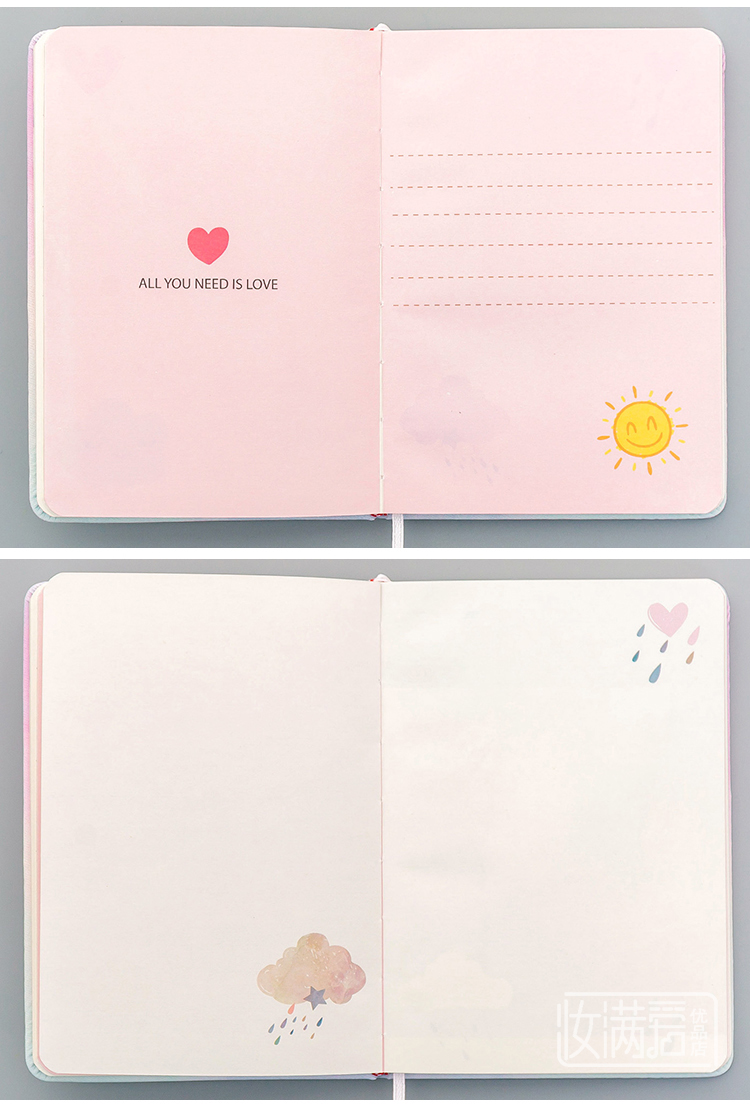 New color page lights cute girl heart notebook book
