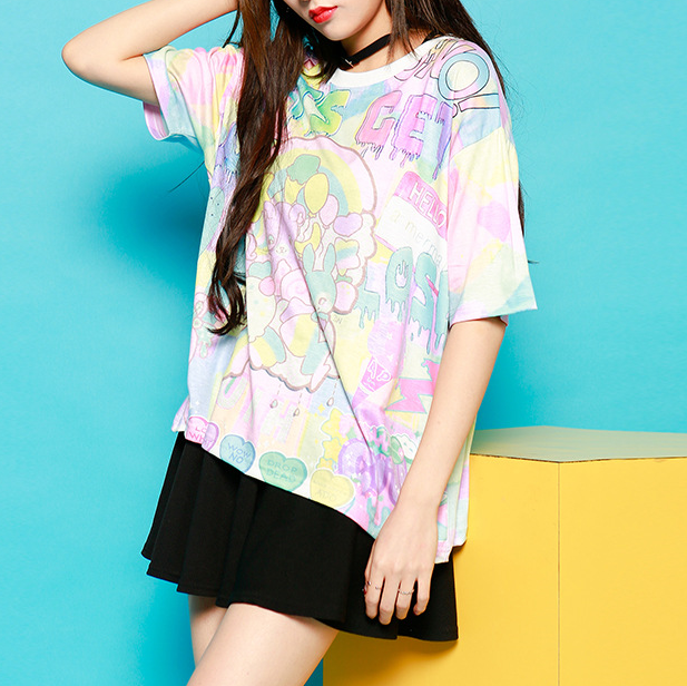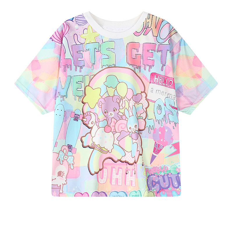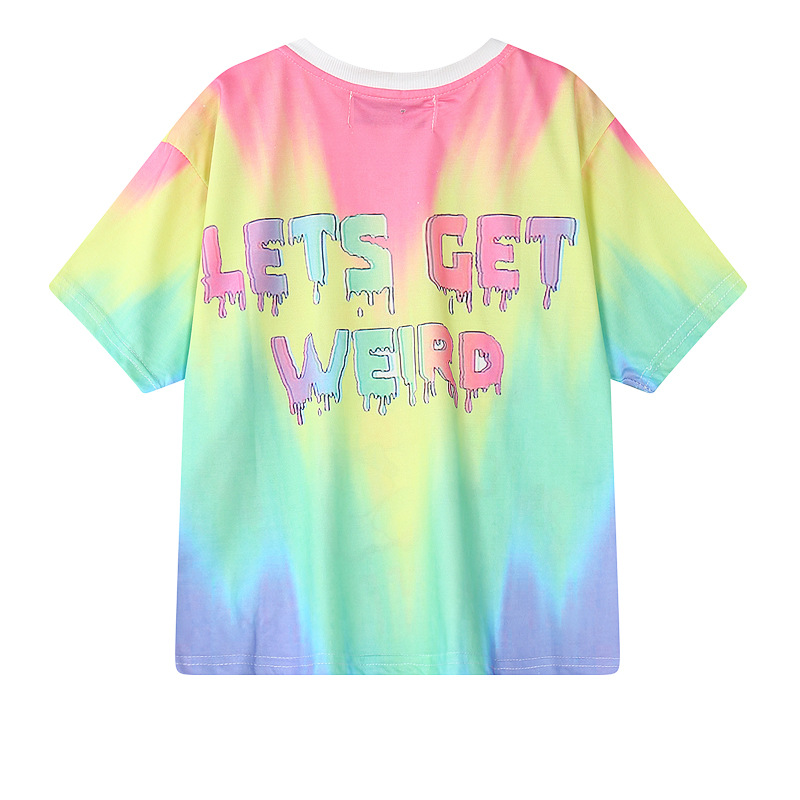 Harajuku style tie-dyed gradient color small animal short-sleeved T-shirt