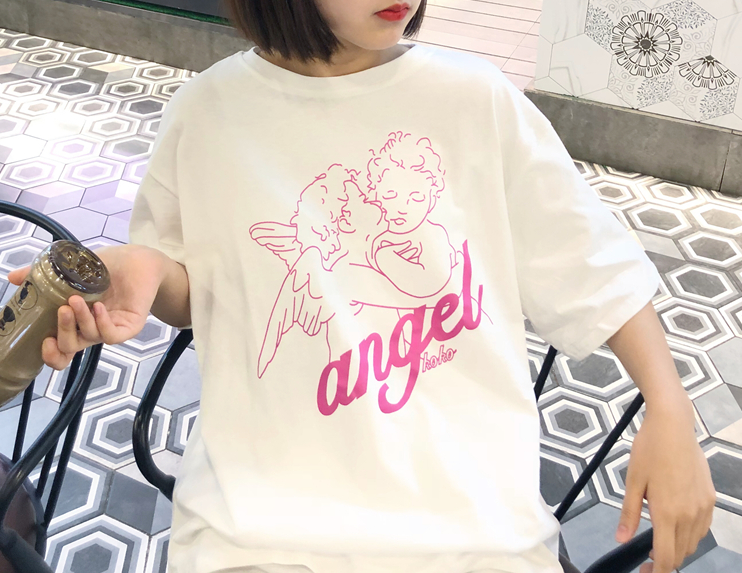 Harajuku Cute Cartoon Angel Letter T-Shirt