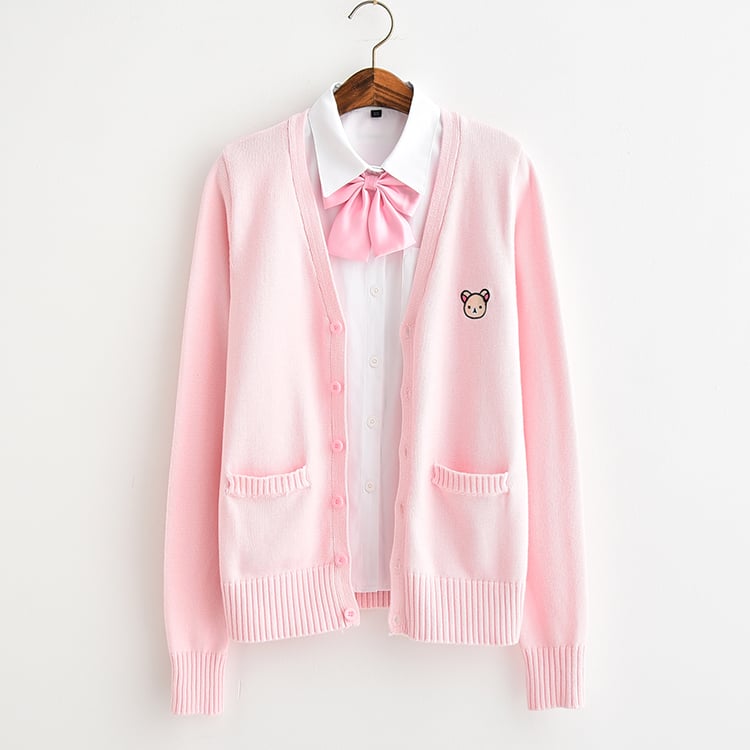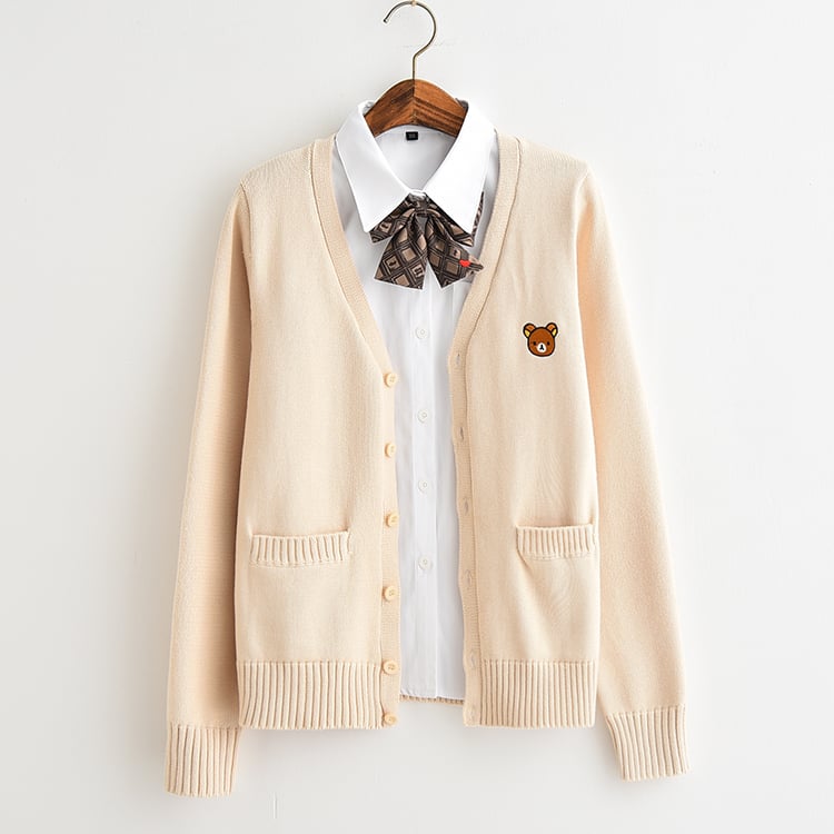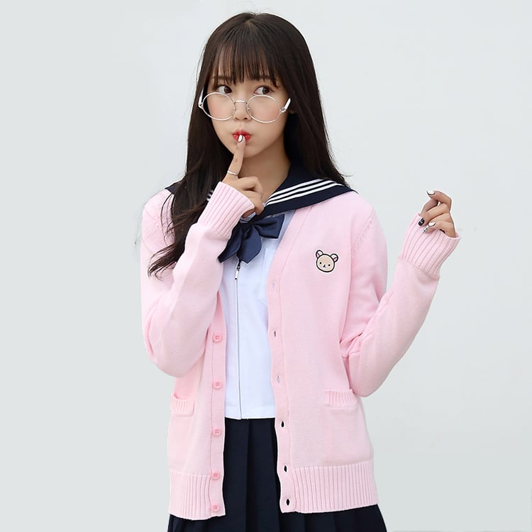 New cartoon cute JK uniform embroidery cardigan long-sleeved sweater