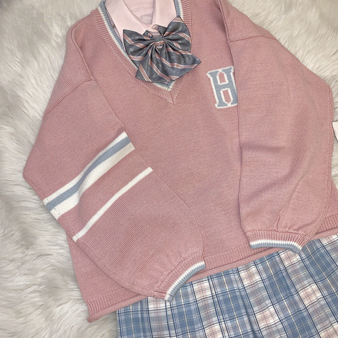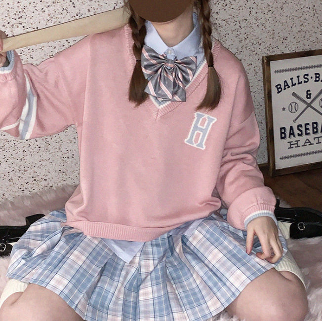 College style letter V-neck sweater