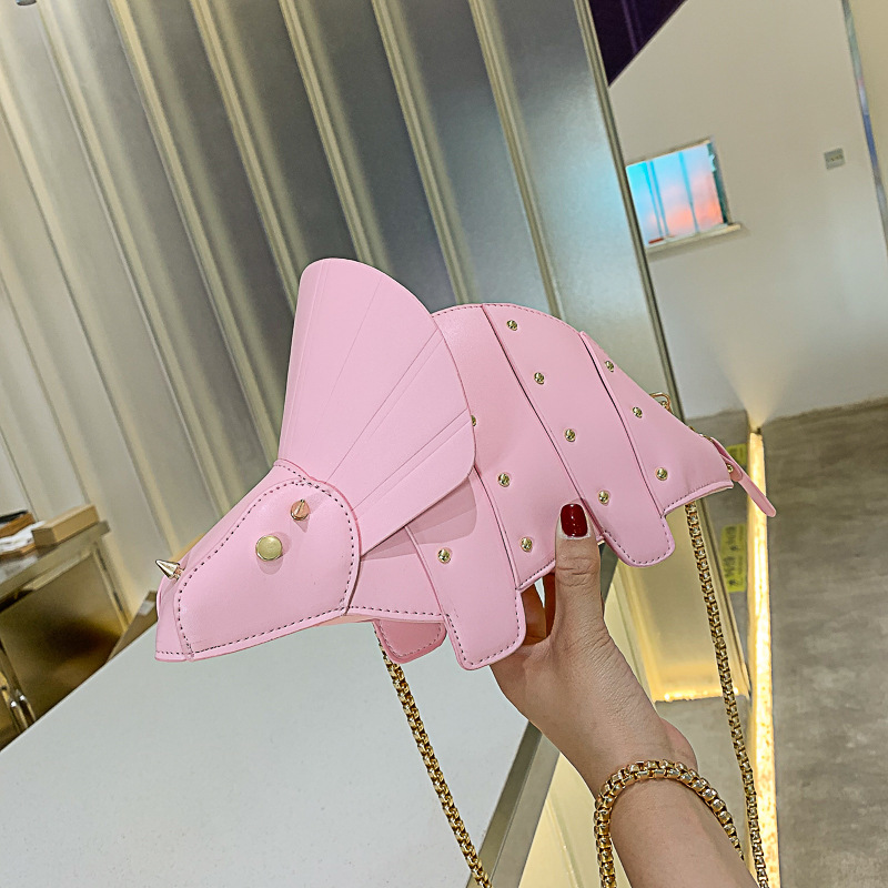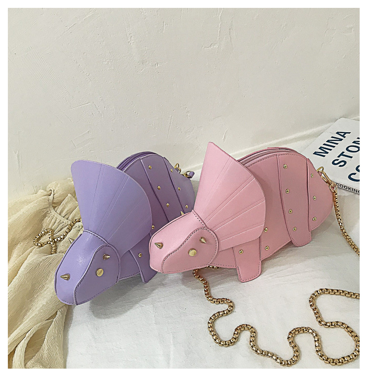 New personality cartoon triangle dragon Messenger bag creative dinosaur rivet shoulder bag