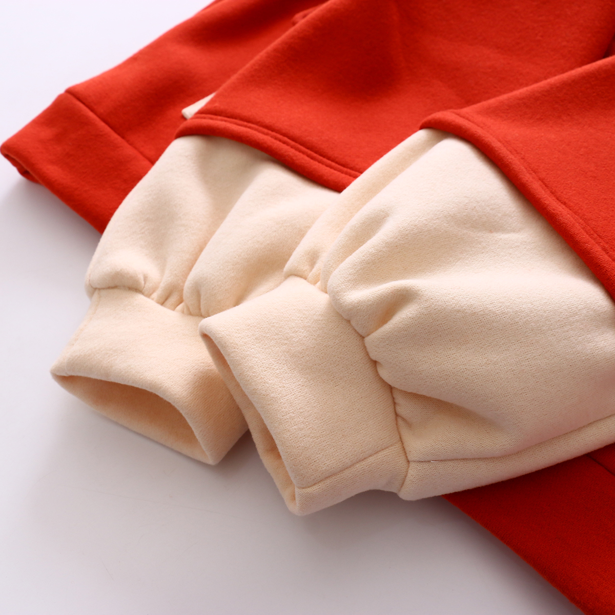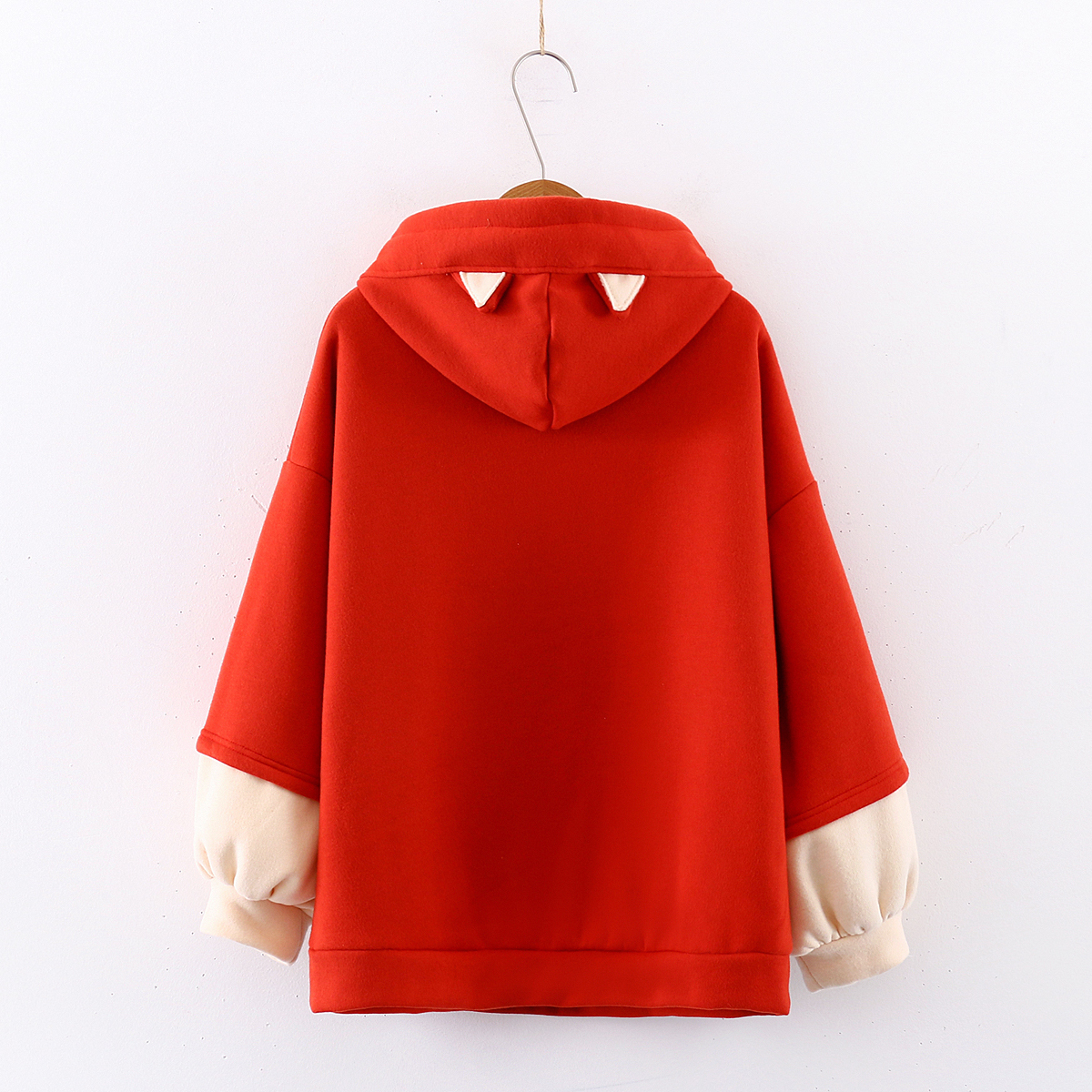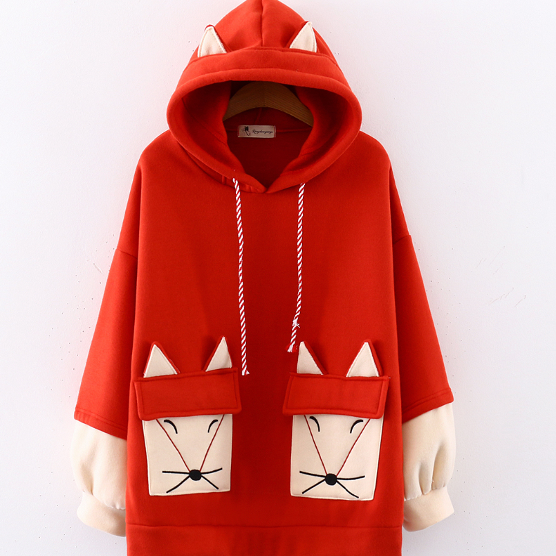 Cartoon embroidered small fox pocket colorblock hoodie