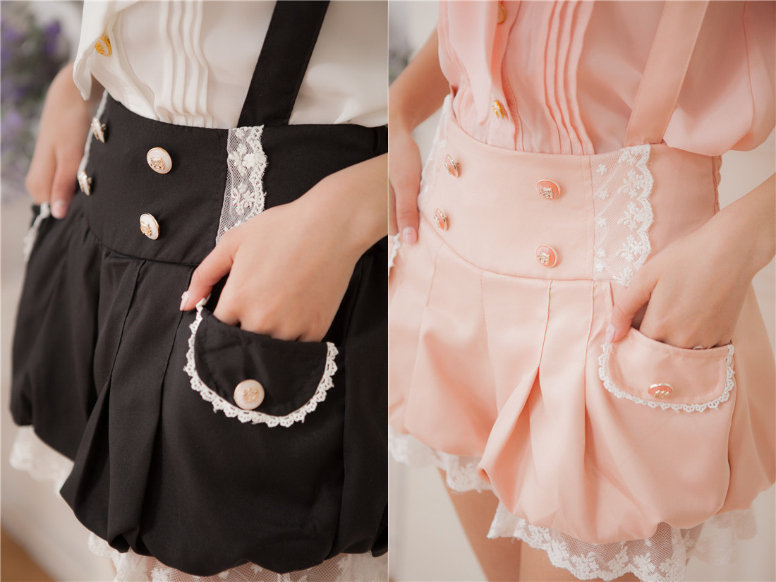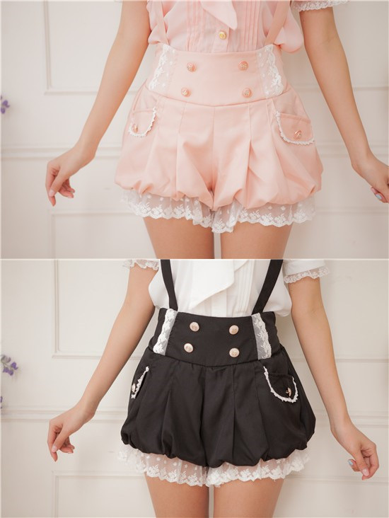 Cute Pocket Double Breasted Lantern Bib Shorts