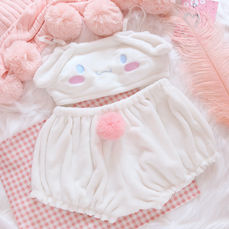 New Sweet Cute Big Ears Strap Plush Tube Top + Pumpkin Pants Set