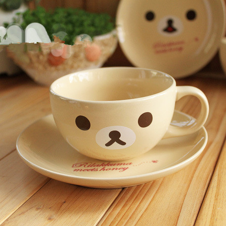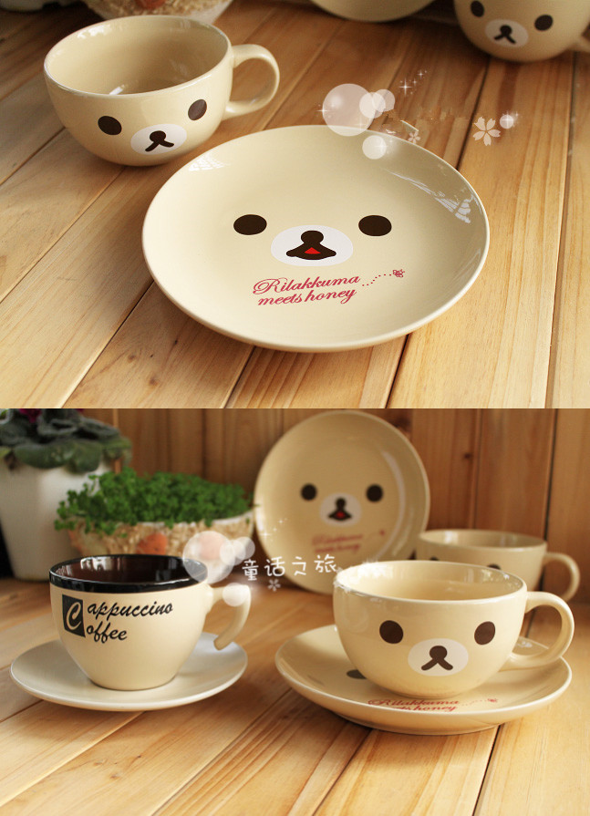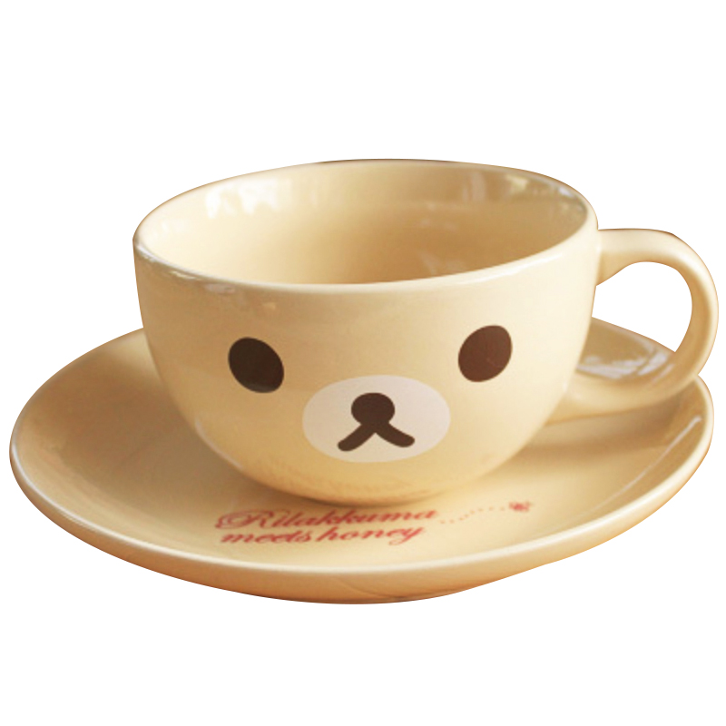 Cute ceramic creative coffee cup water cup cartoon relaxing bear cup plate bear cup saucer set