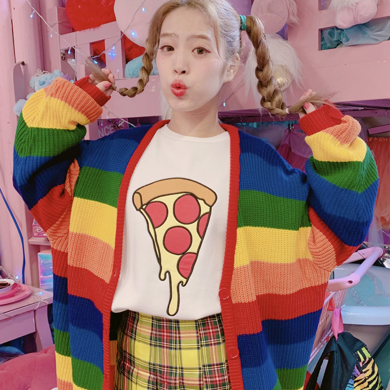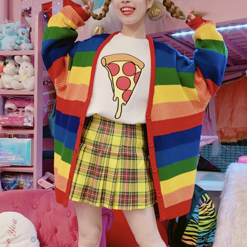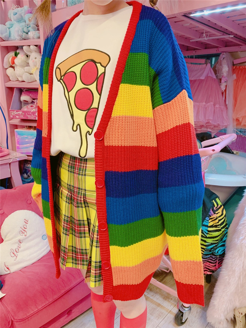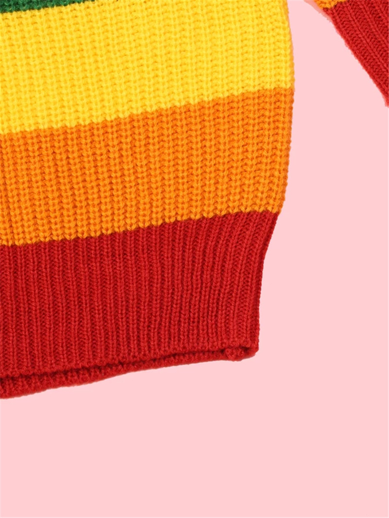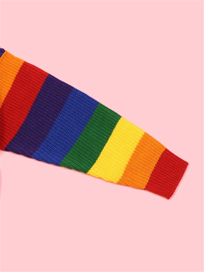 New Rainbow Stripe Colorblock Loose Sweater Jacket