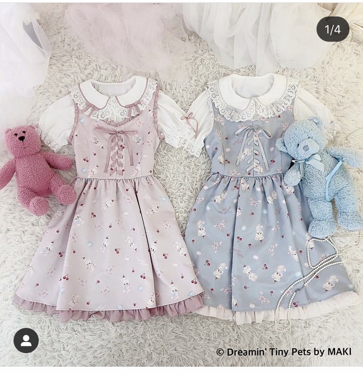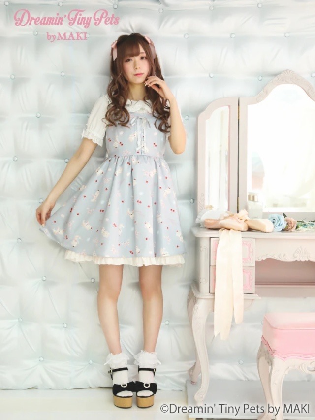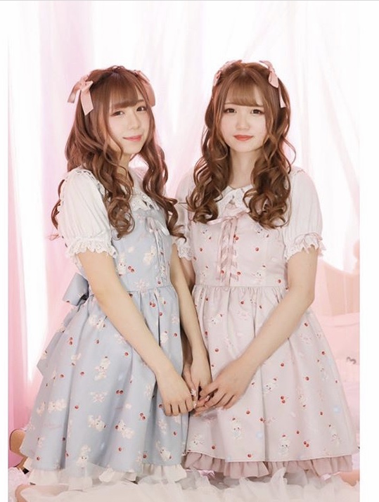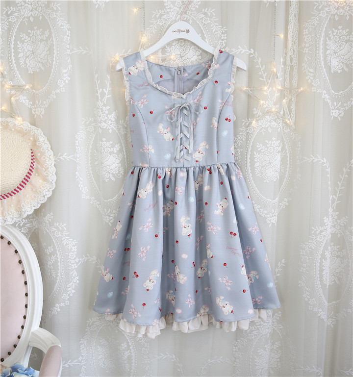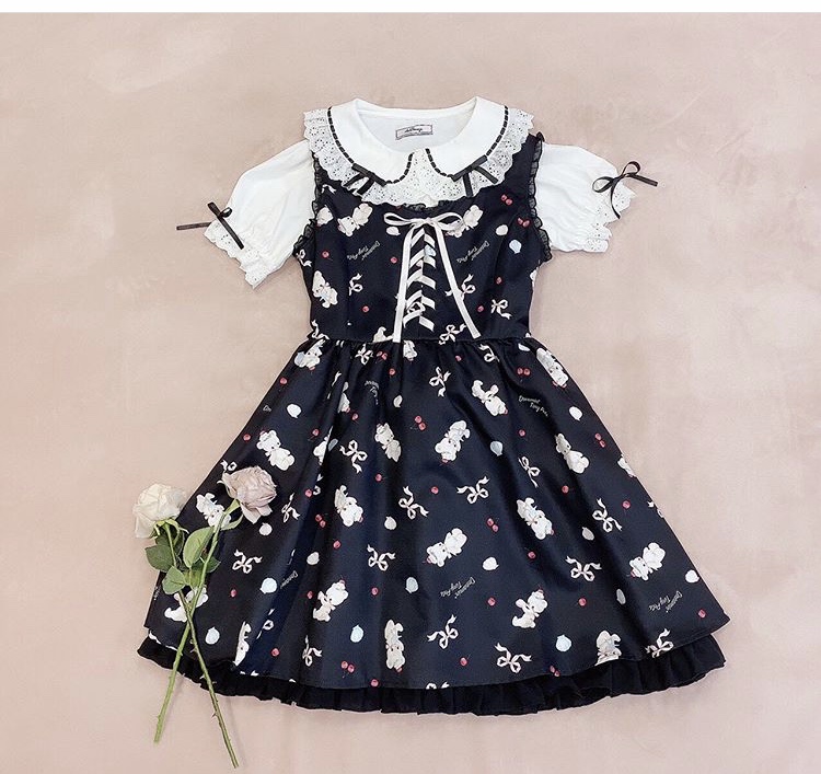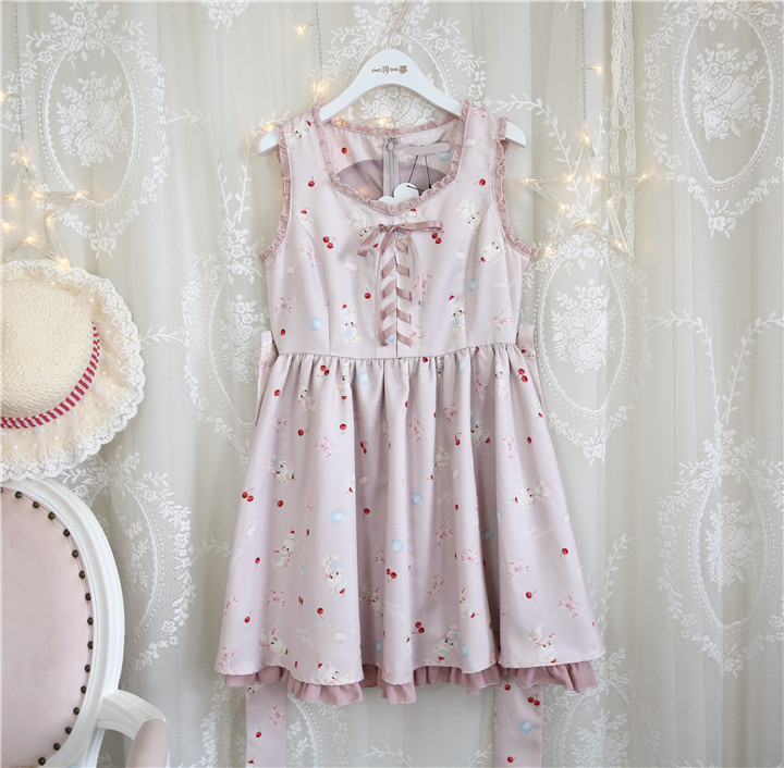 Summer new Japanese sweet soft sister high waist big skirt swing pettiskirt jsk cute bear handle dress
