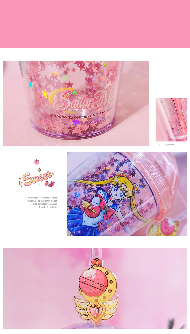 Harajuku New Sailor Moon Moon Hare Star Quicksand Cup Drinking Straw Cup