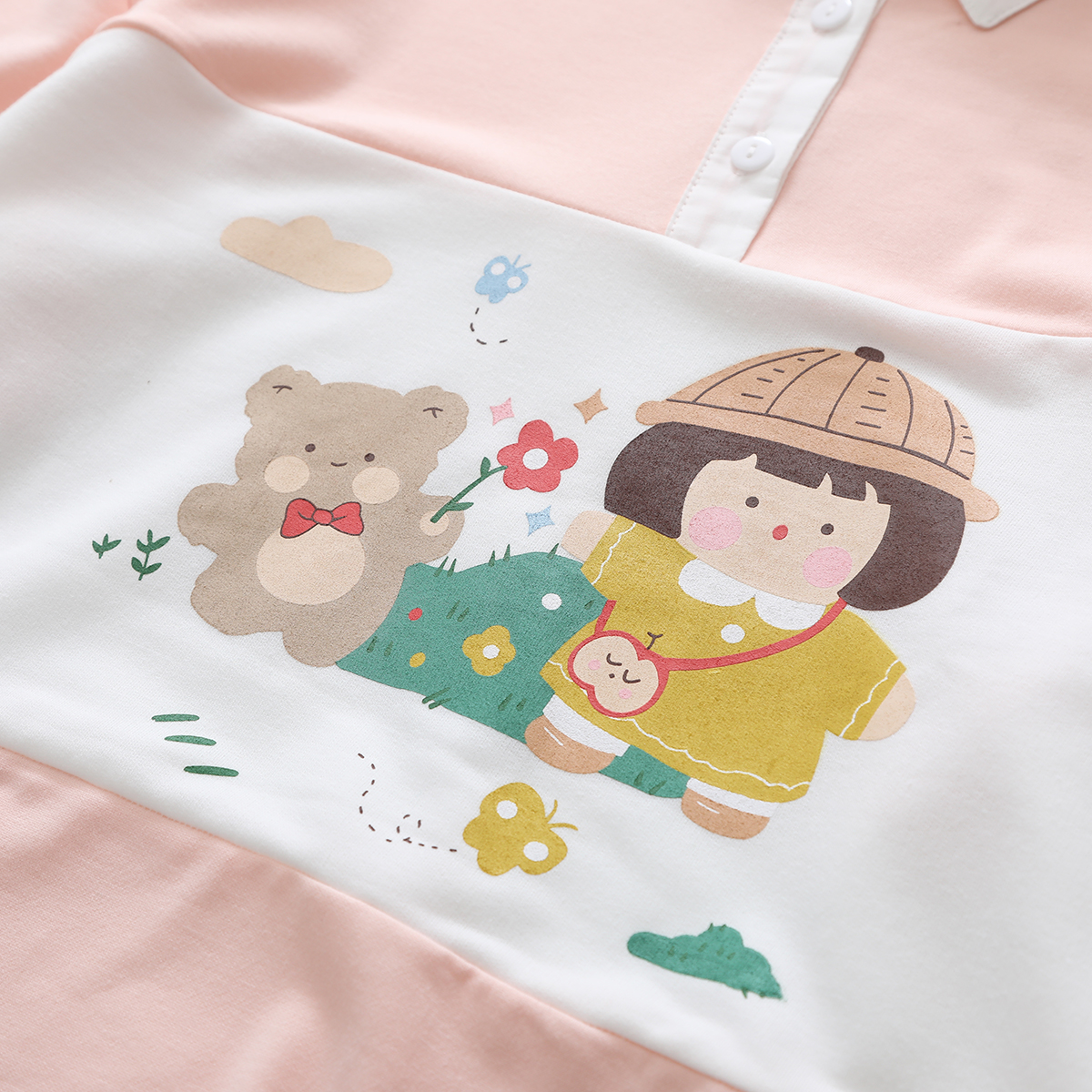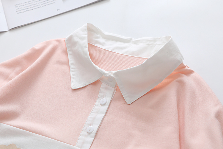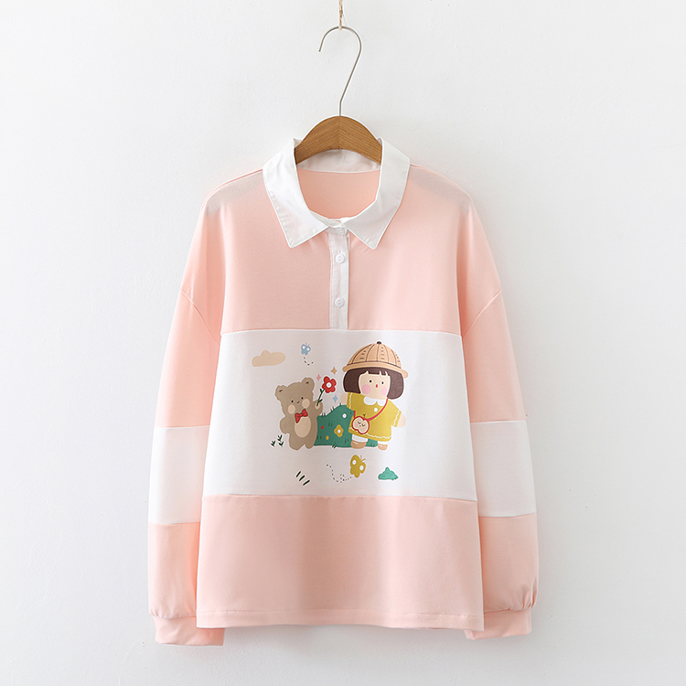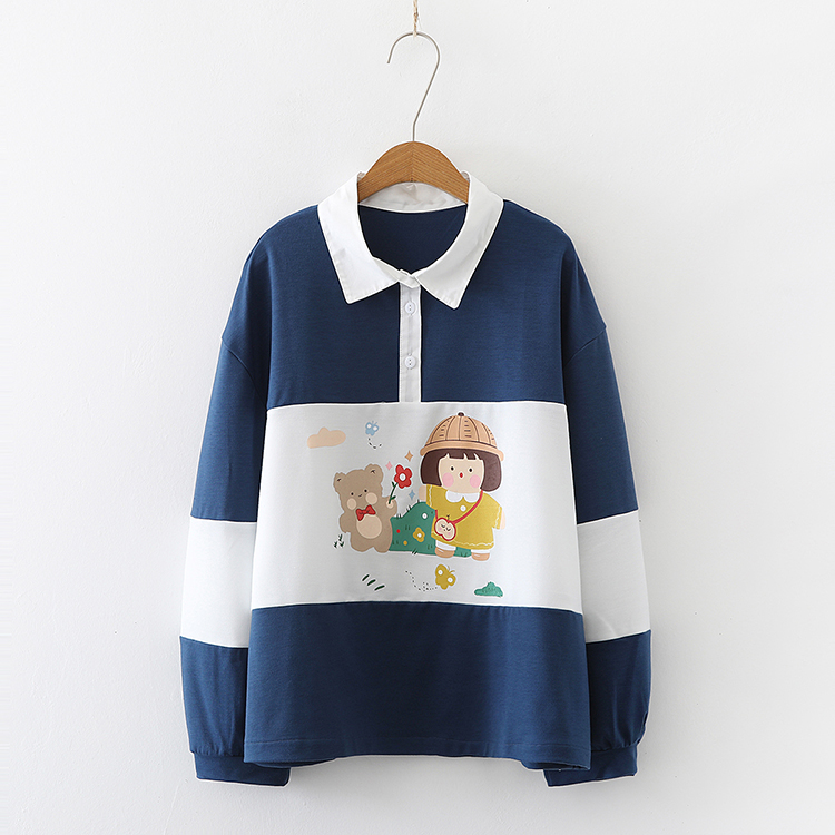 Cute bear print stripe contrast loose collar sweater