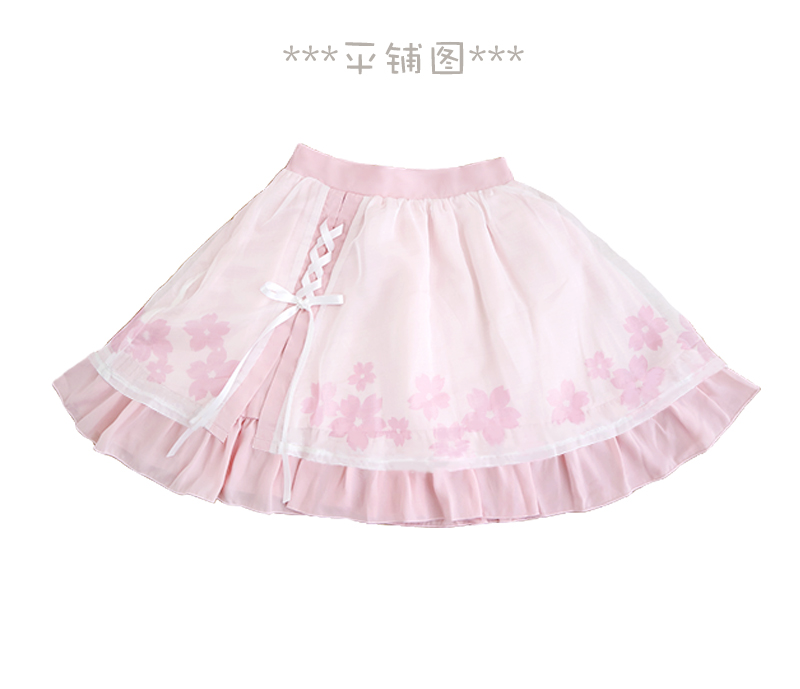 Cute and sweet cherry blossom print skirt bow tie short skirt