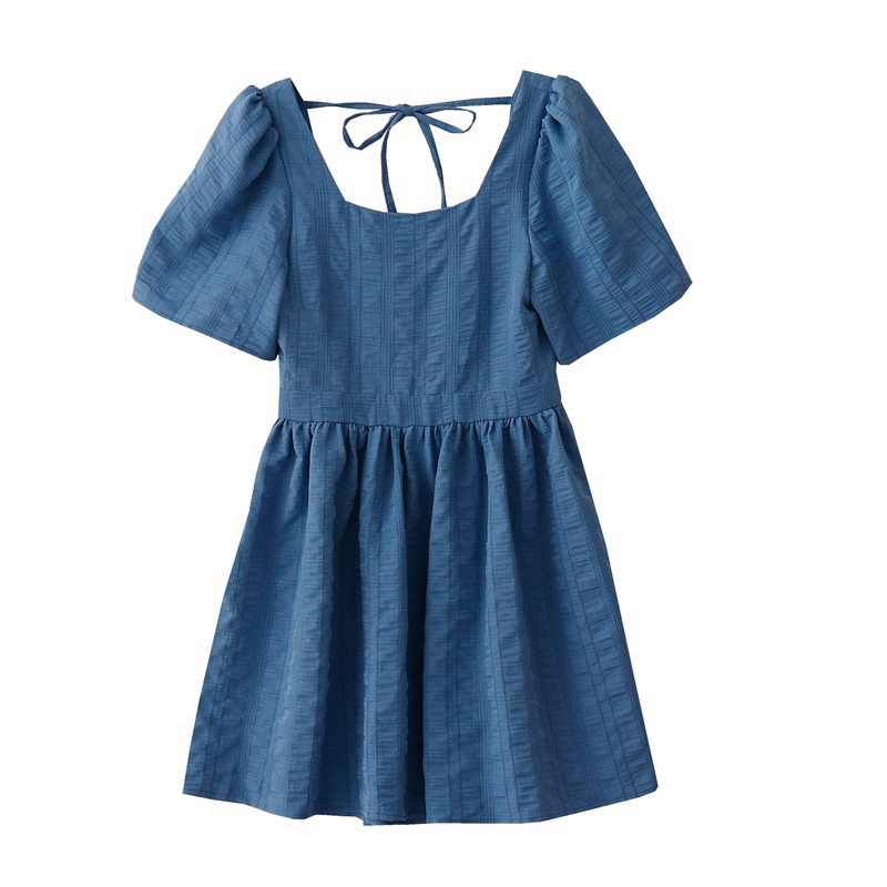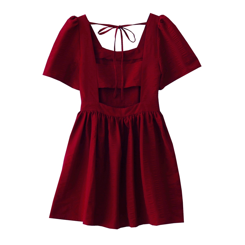 Retro hollow lace-up square neck dress