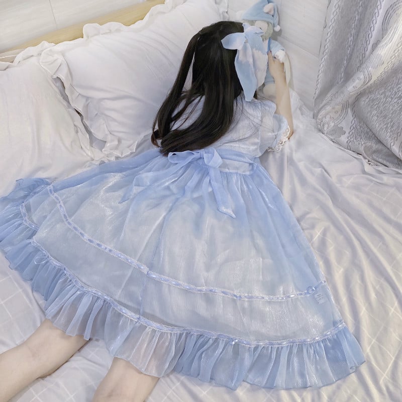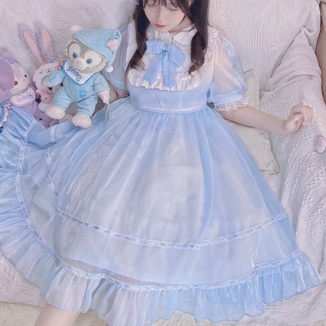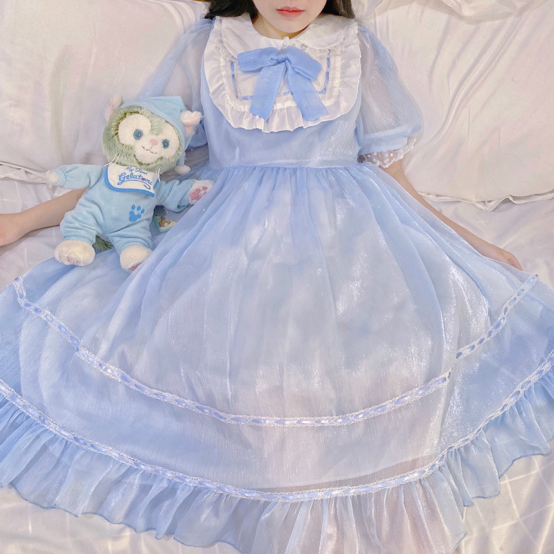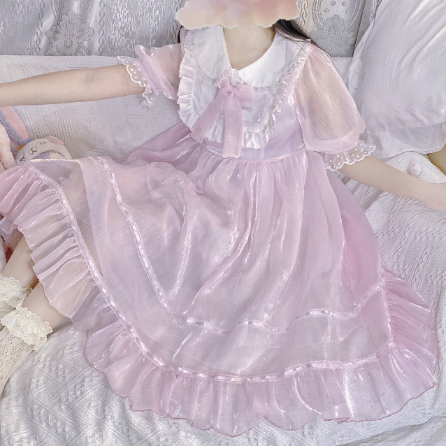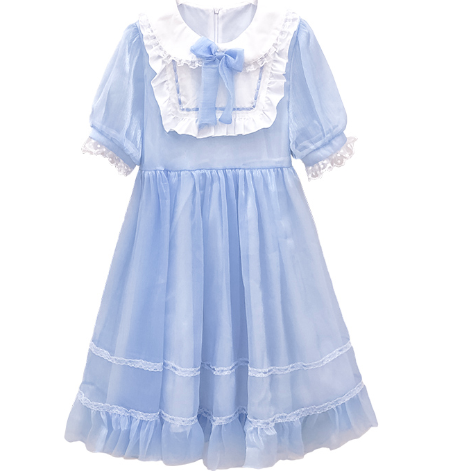 Sweet Bow Doll Collar Lace Short Sleeve Dress