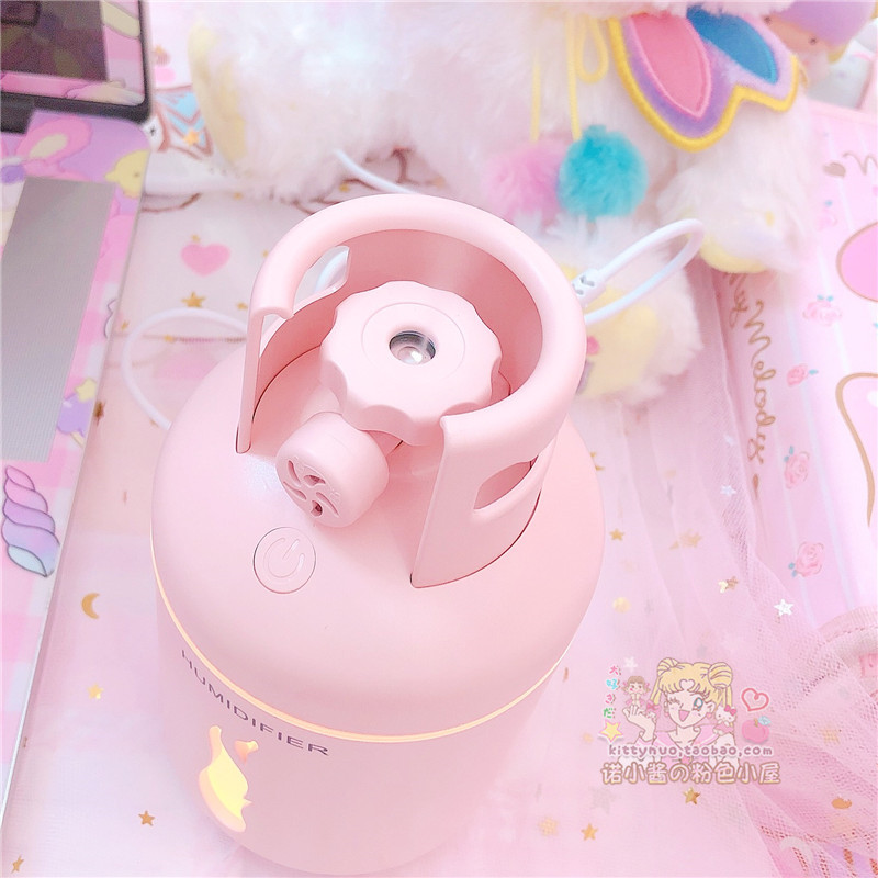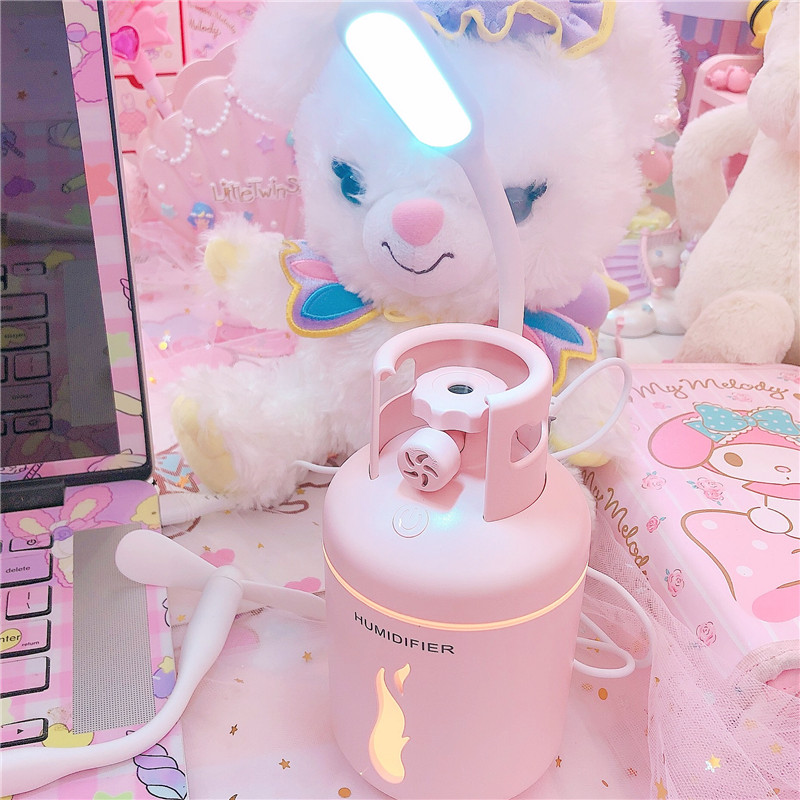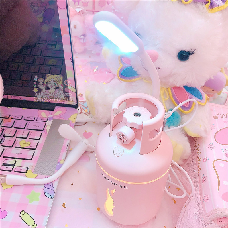 Harajuku style pink gas tank shape cute desktop humidifier fan night light three-in-one multifunctional desktop humidifier