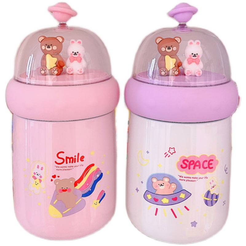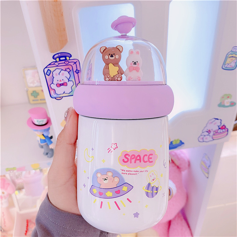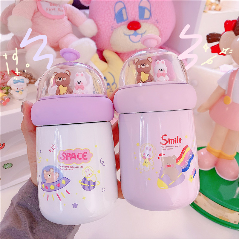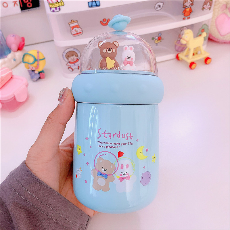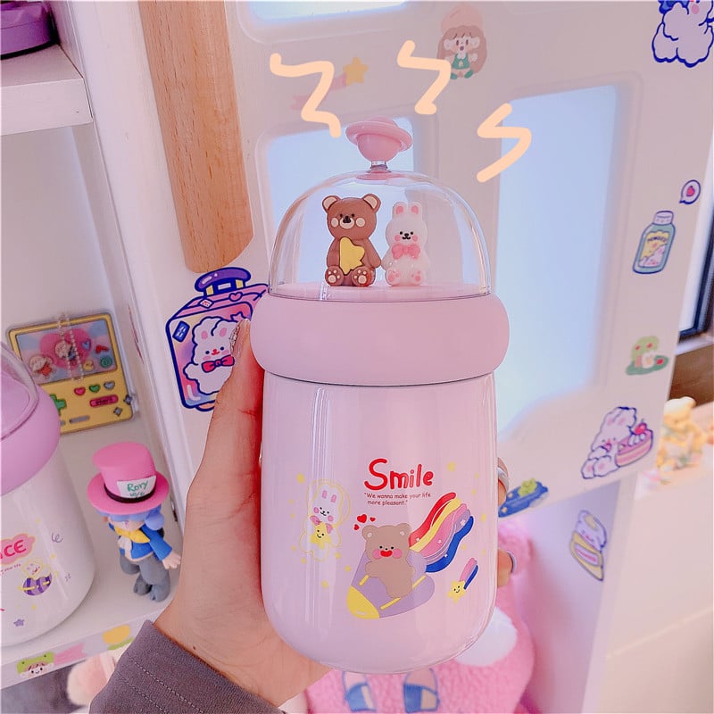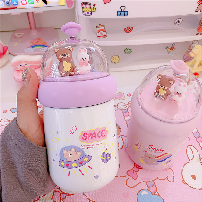 Cute girl heart couple landscape bear portable thermos mug dream water cup