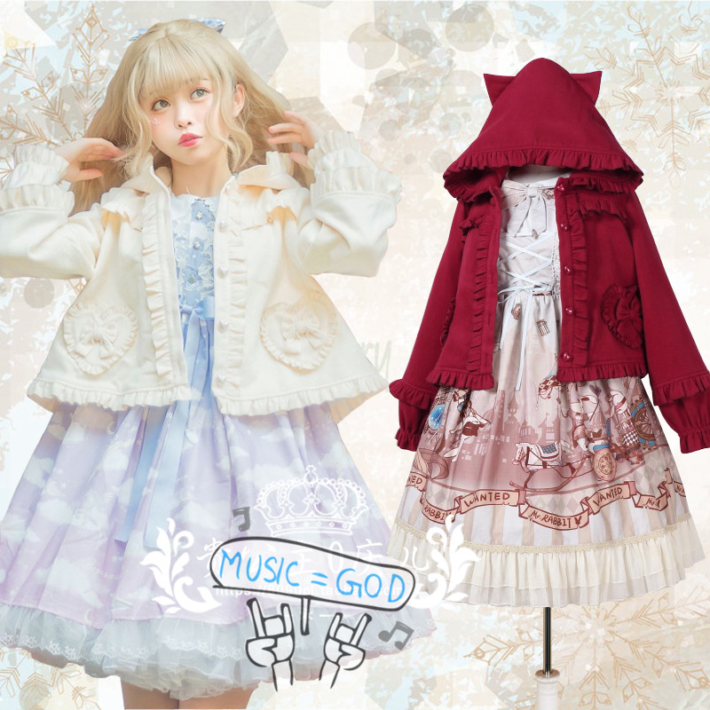 New cute loli cat ears sweetheart cloak thick coat