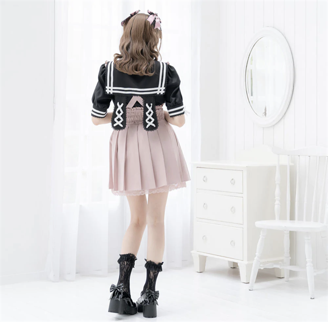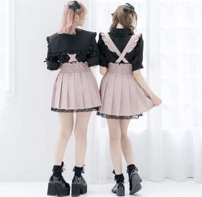 Summer new fungus edge bandage bow all-match pleated skirt lace edge sweet strap skirt