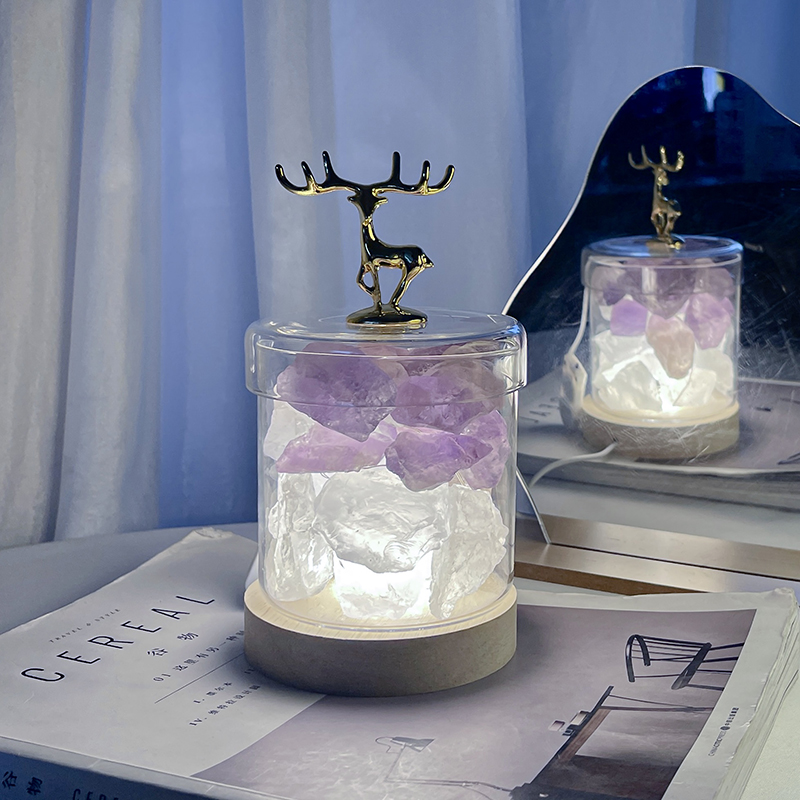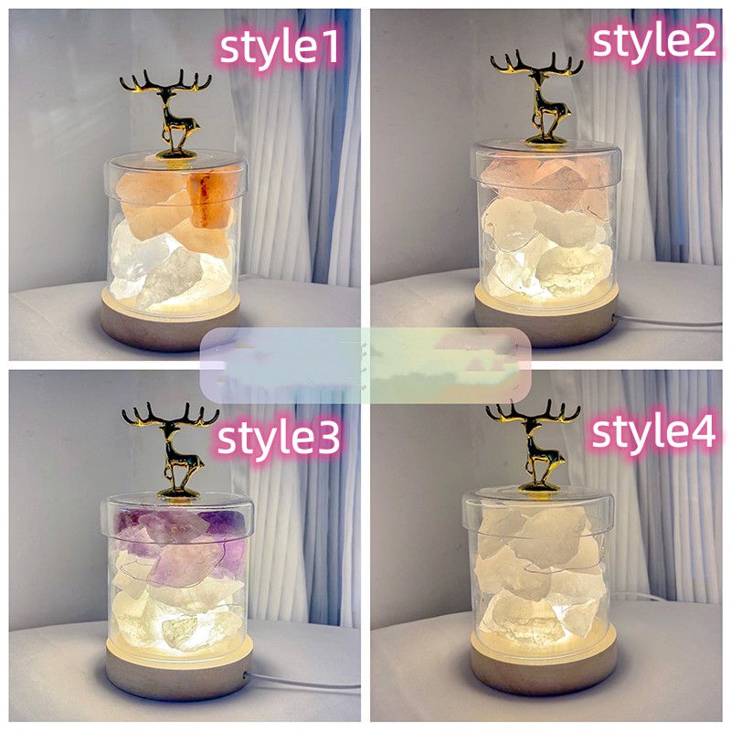 The product includes: 1 container, several crystal stones, 1 usb lamp holder/light strip