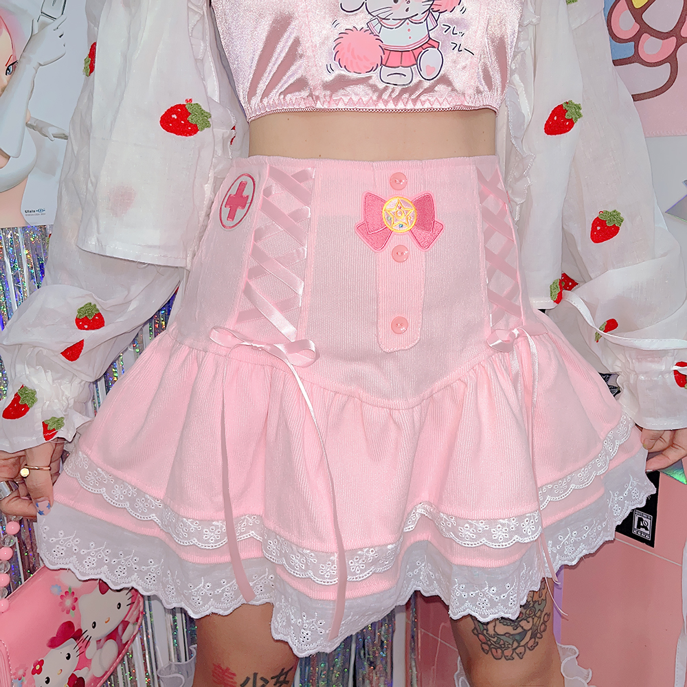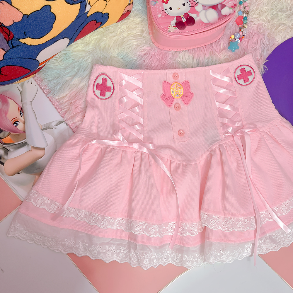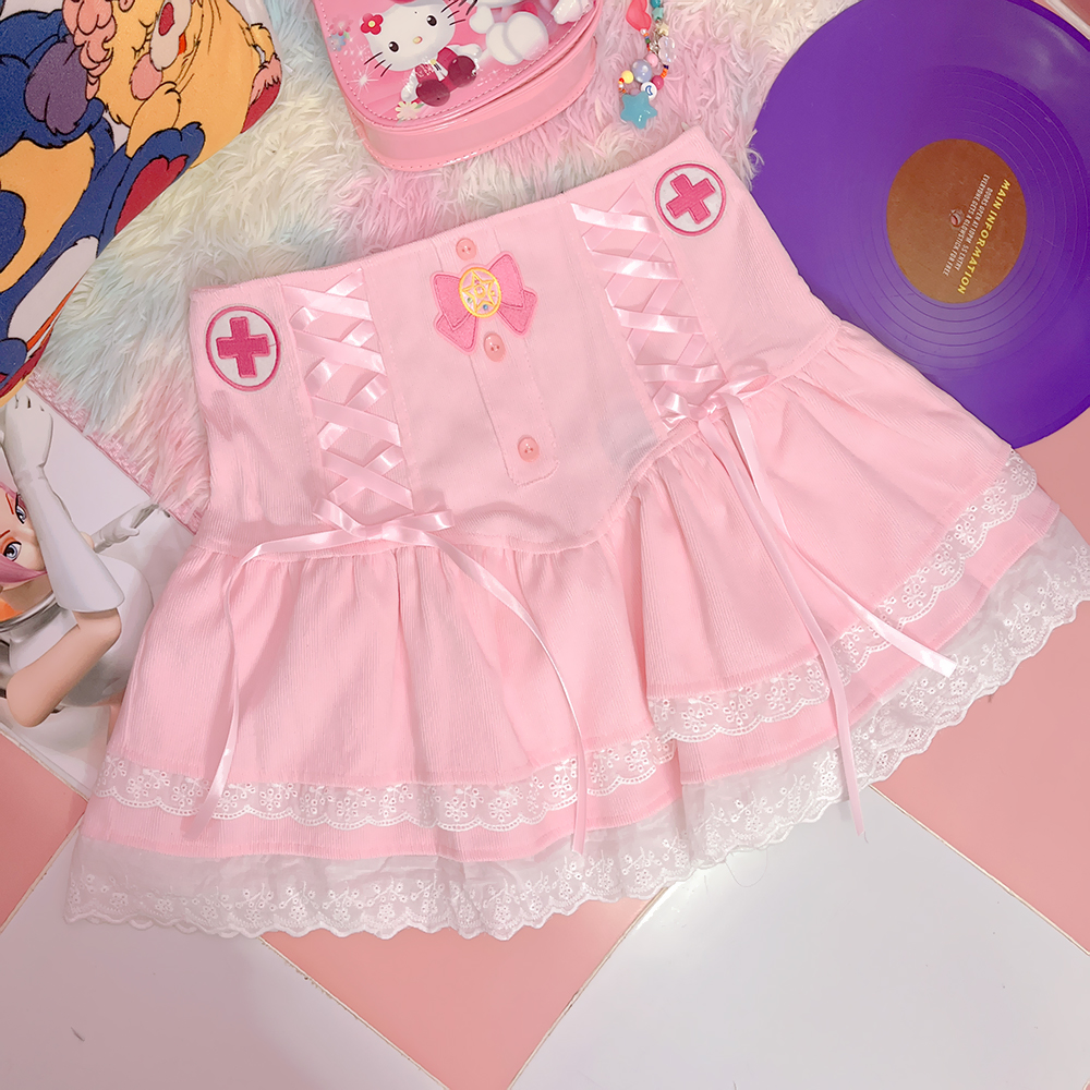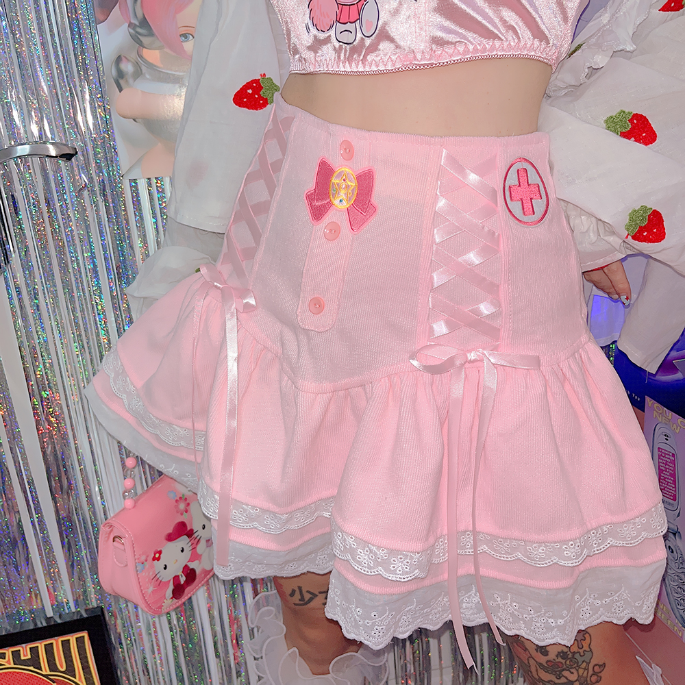 Sweet and soft girl embroidered bowknot double layer ribbon lace female skirt skirt