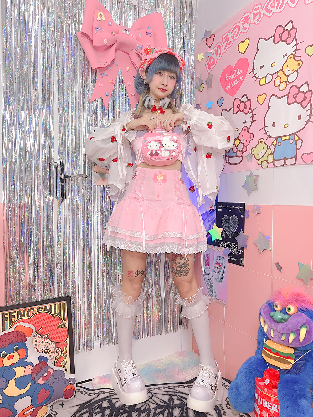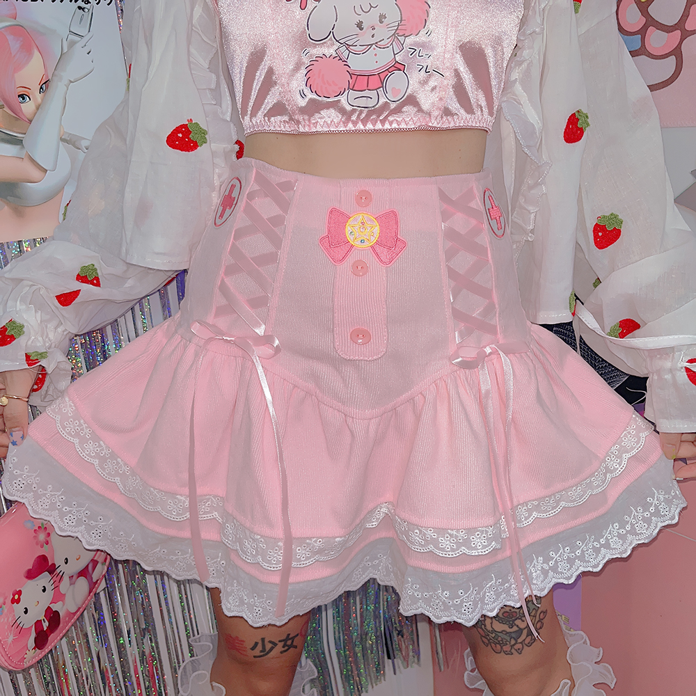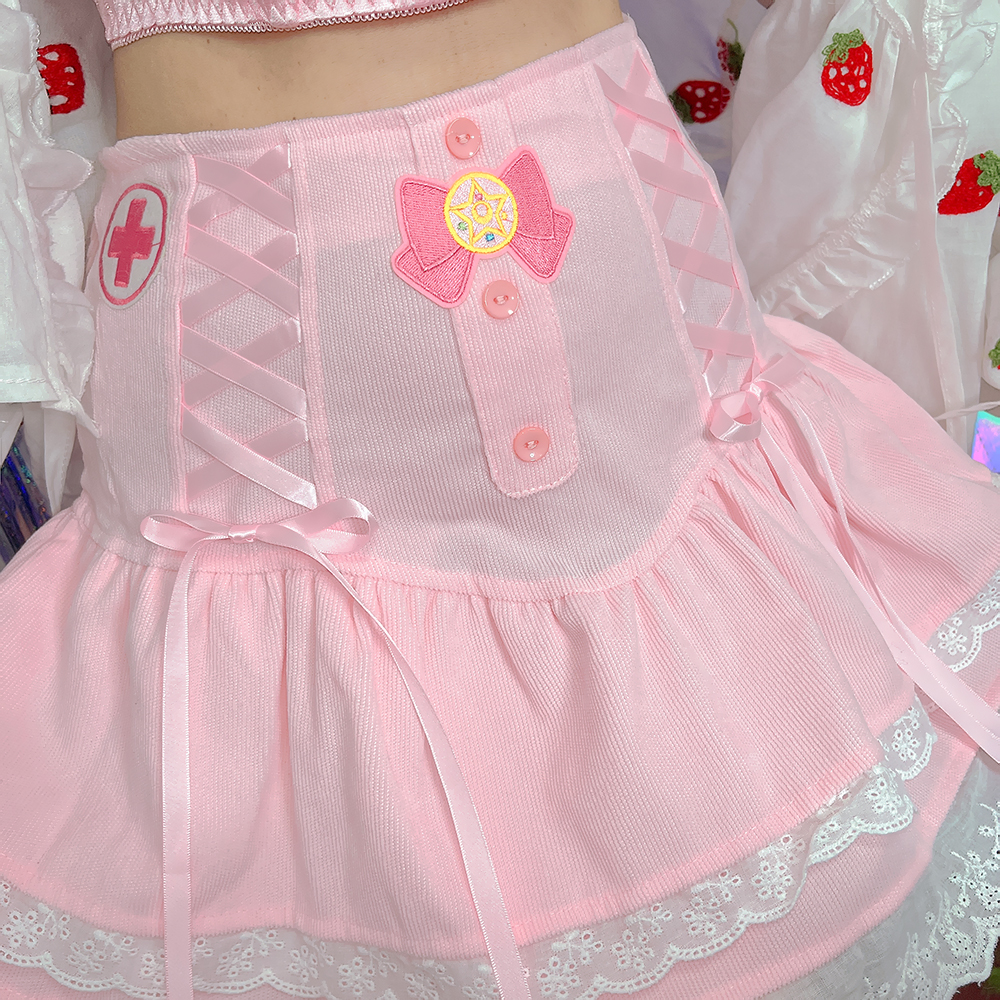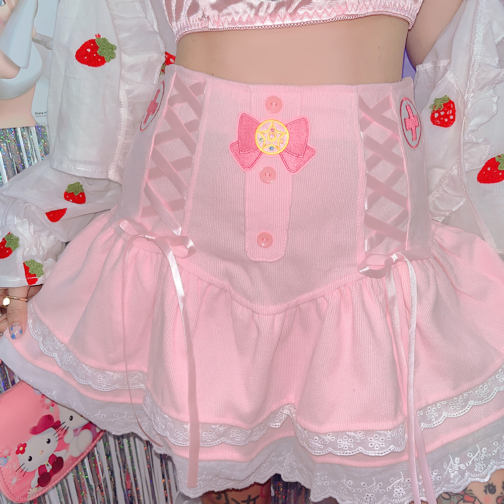 Sweet and soft girl embroidered bowknot double layer ribbon lace female skirt skirt