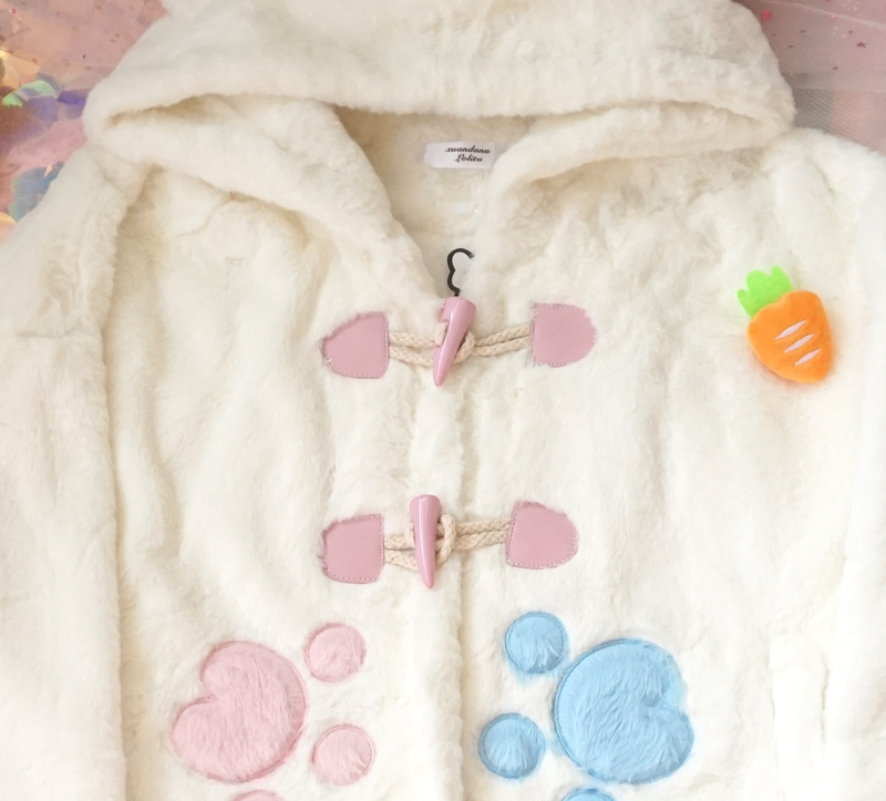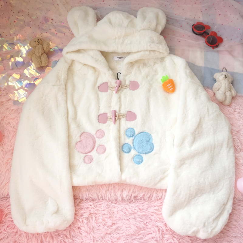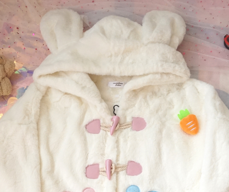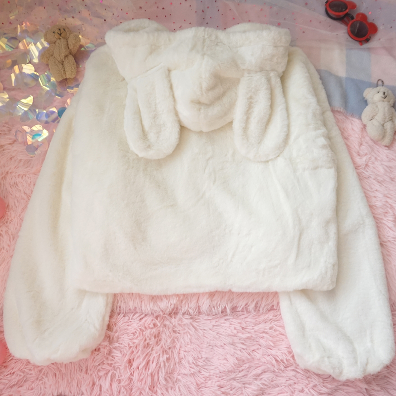 Cute warm plush jacket with rabbit ears
