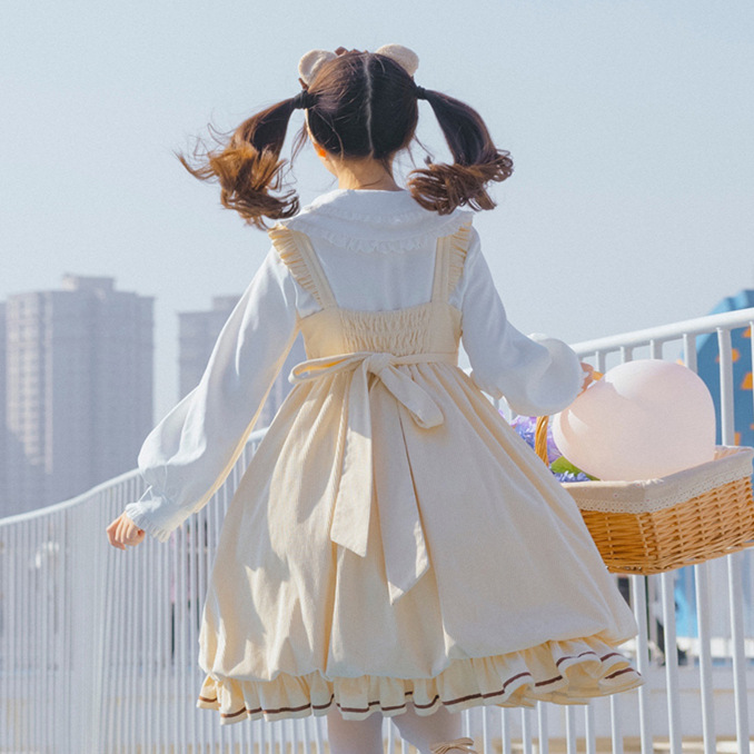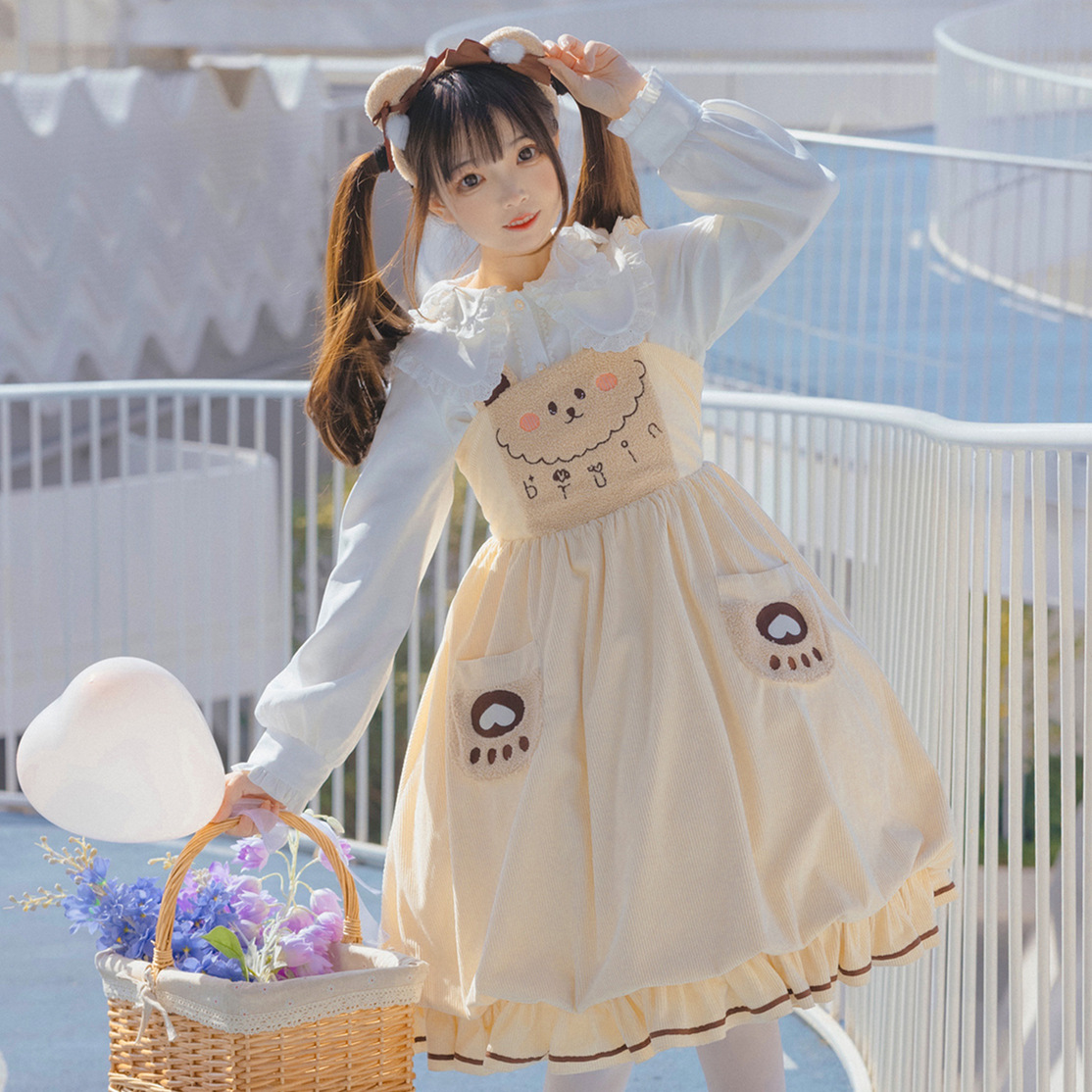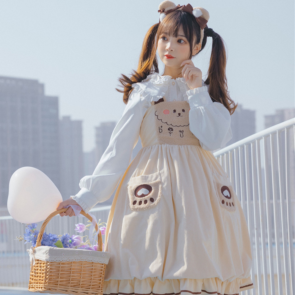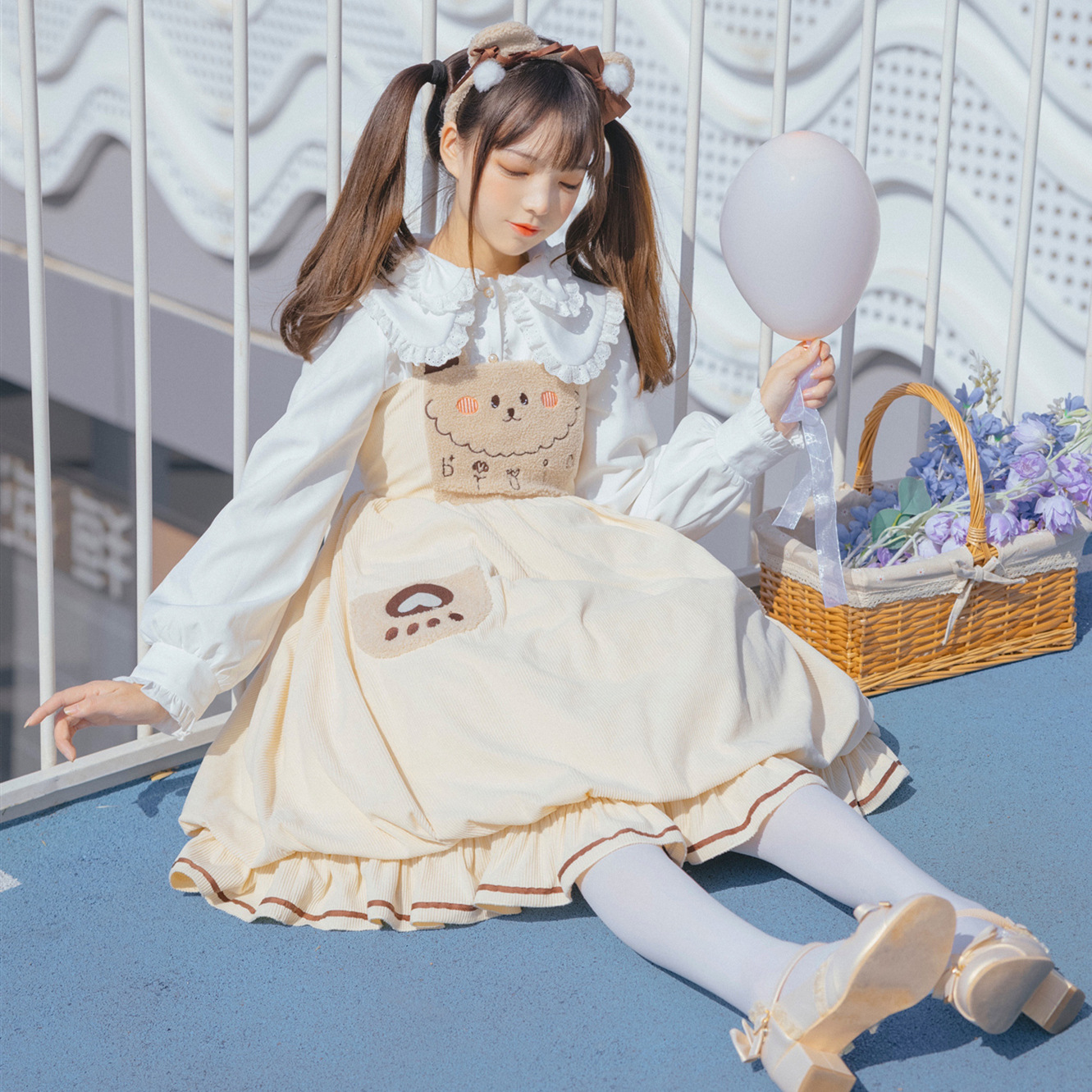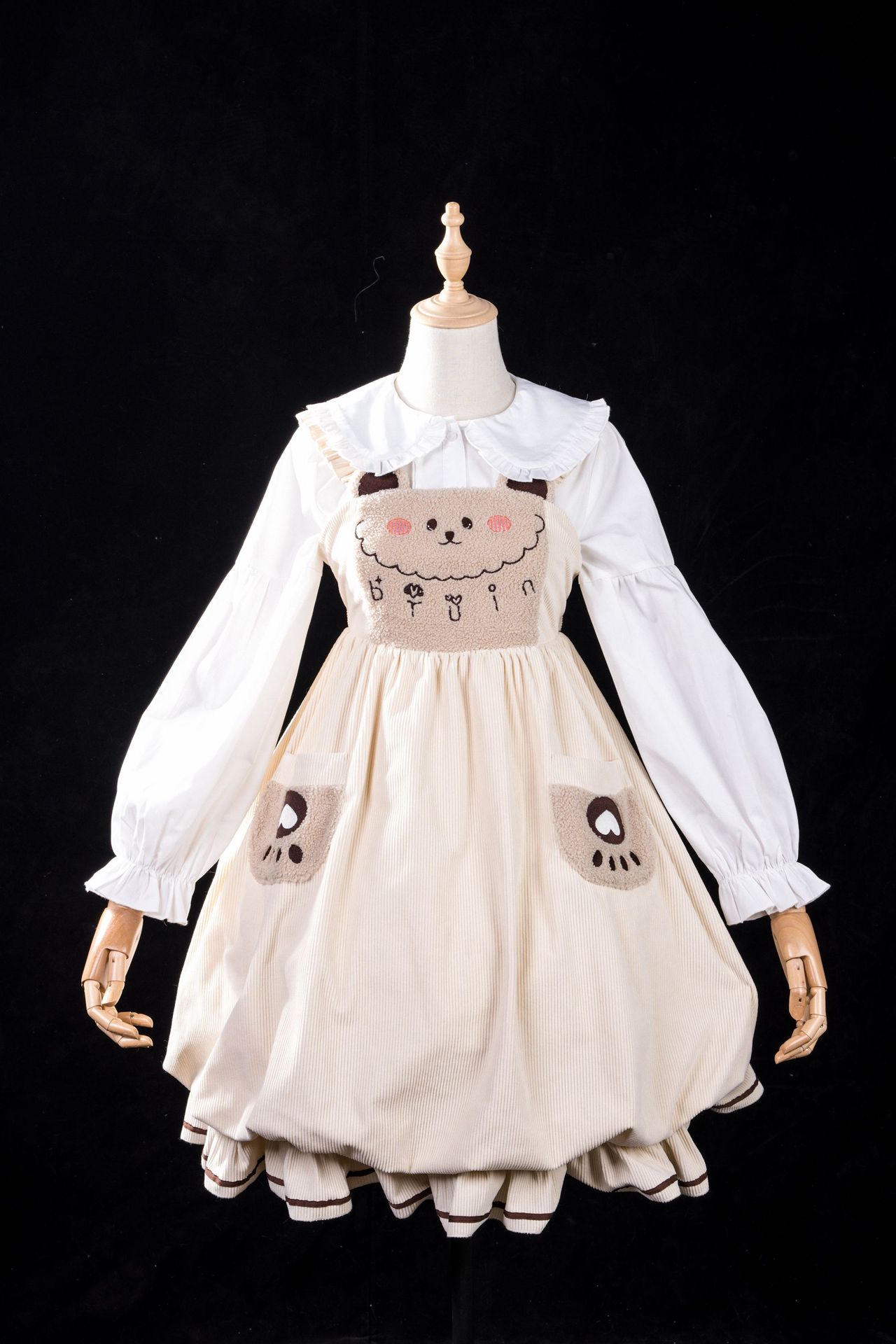 Original little brown bear cute corduroy small high waist jsk suspender skirt