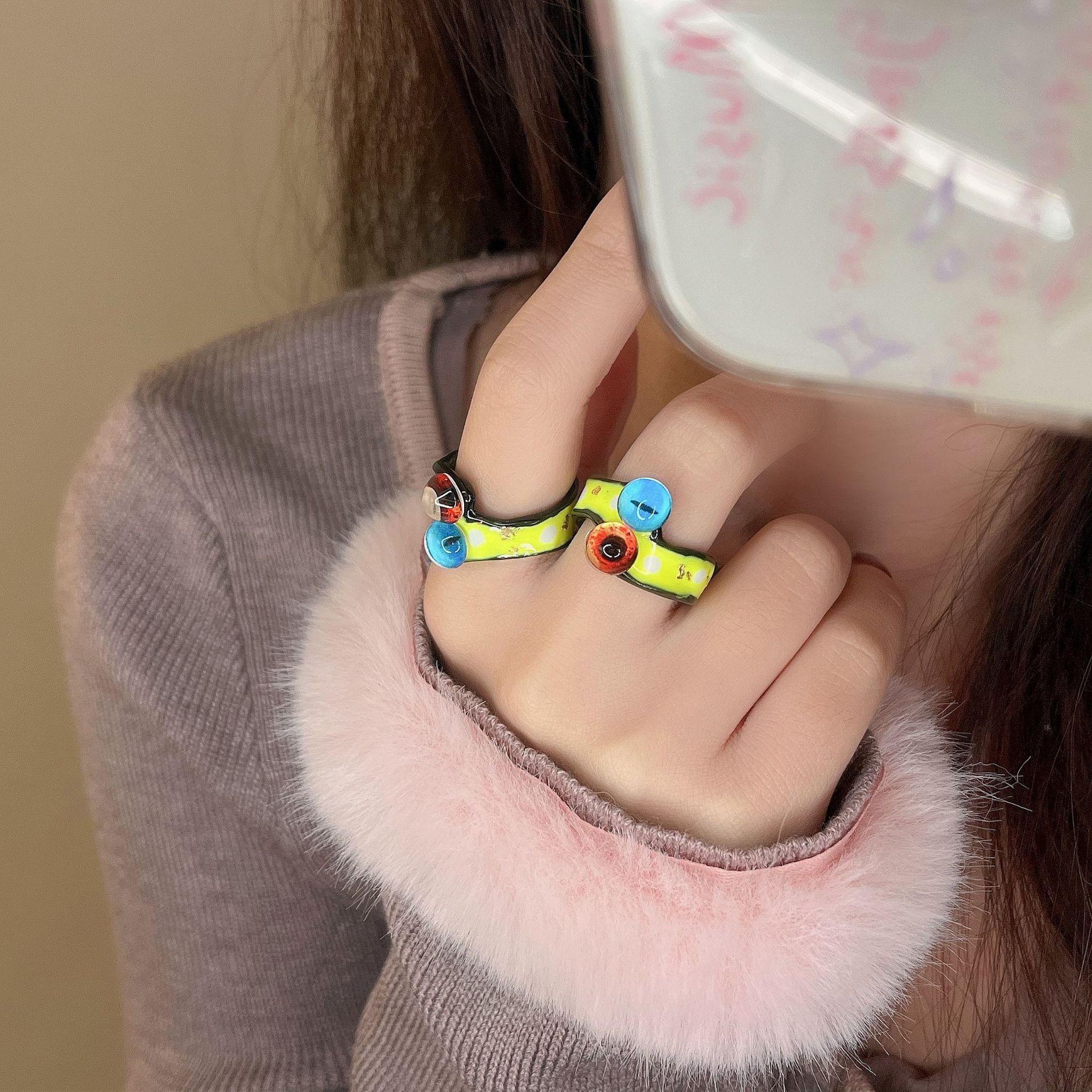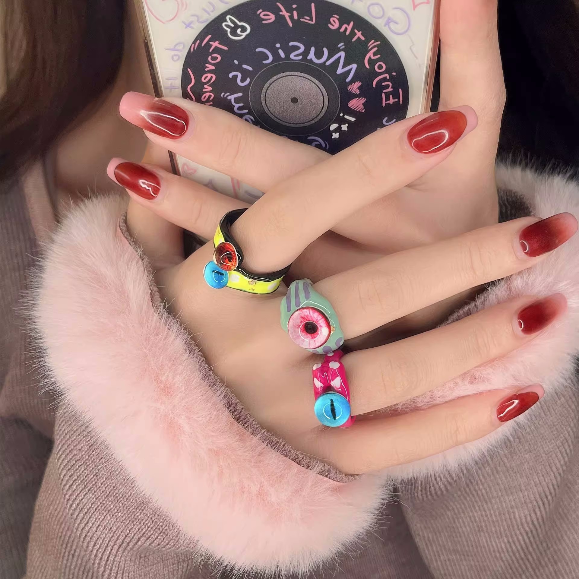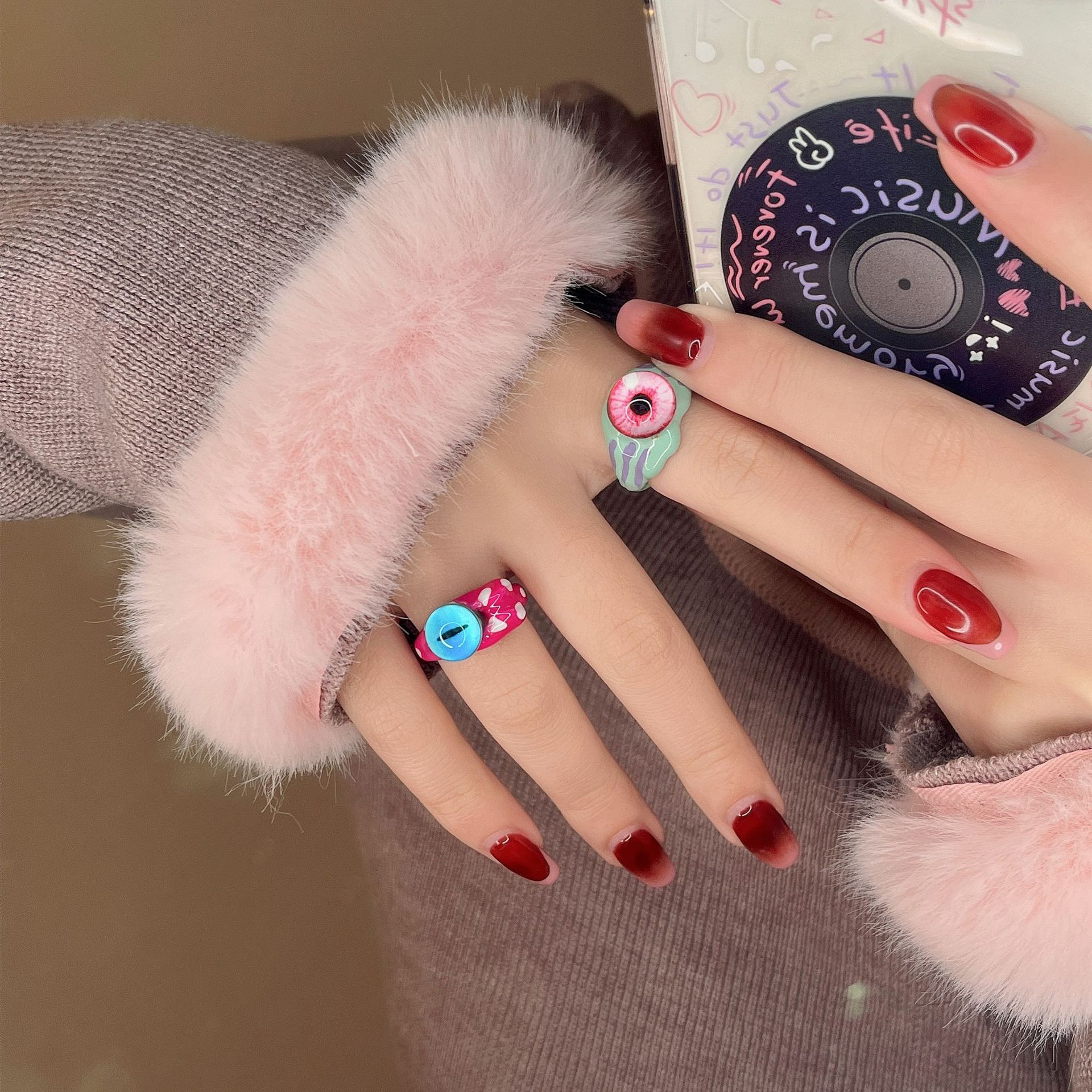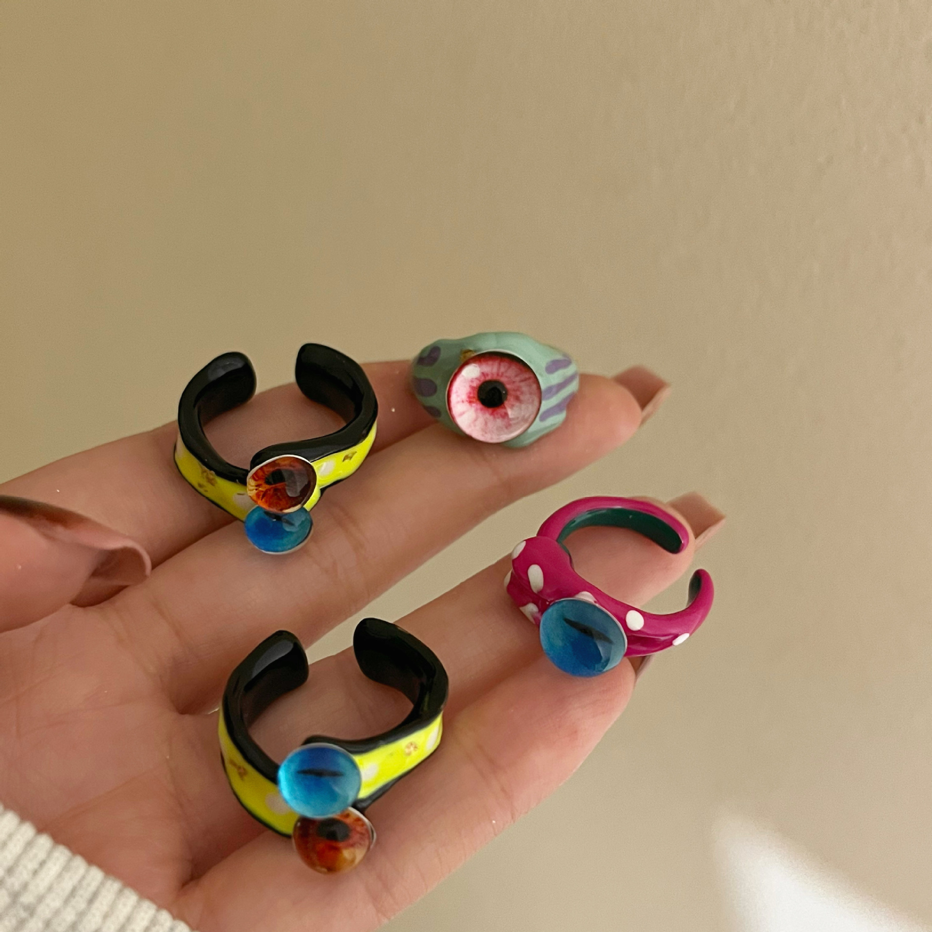 Creative funny dripping oil non-fading enamel eye ring irregular color eyeball ring