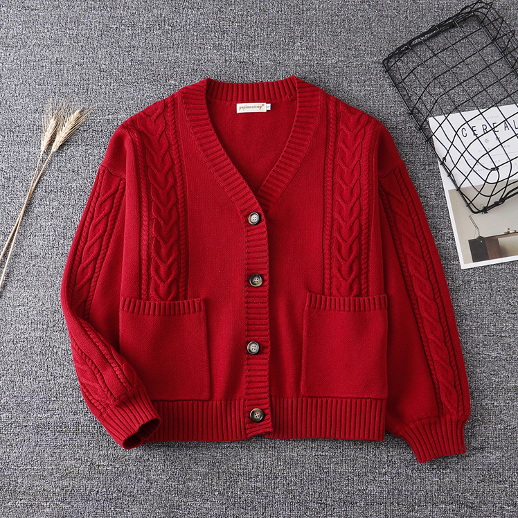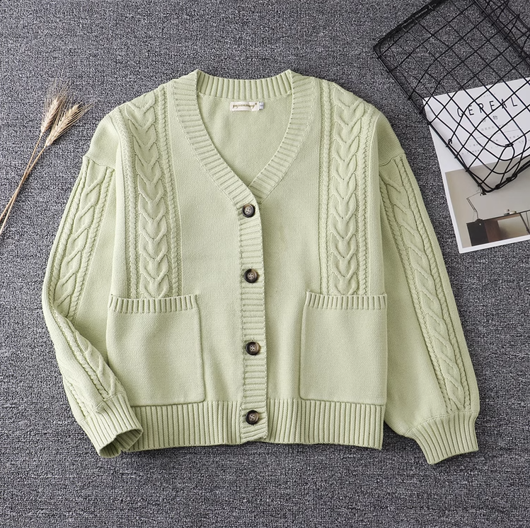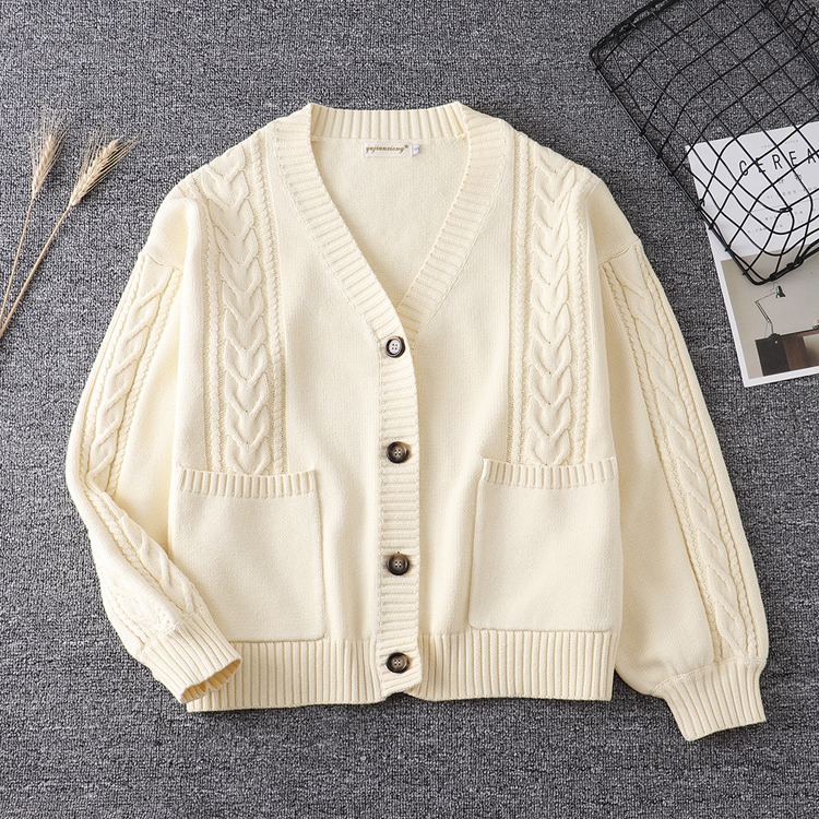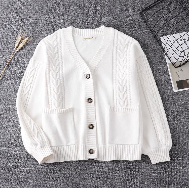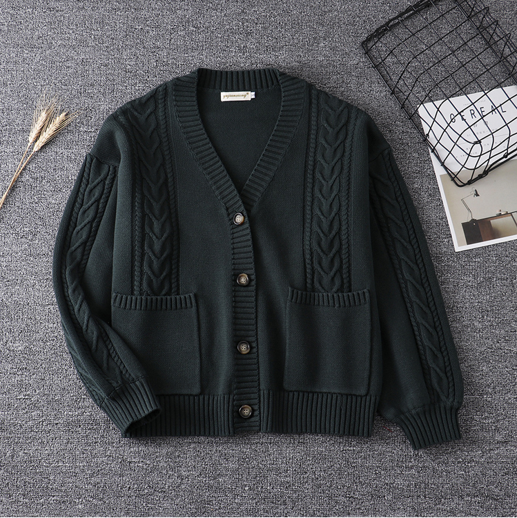 Knitwear JK Uniform College Twist V-Neck Sweater Jacket