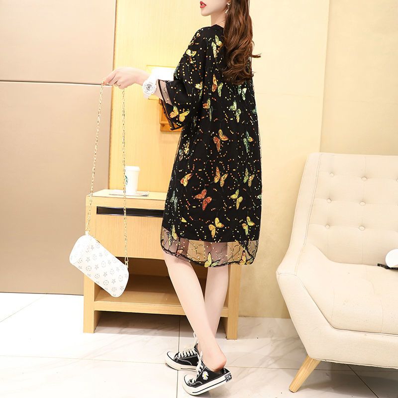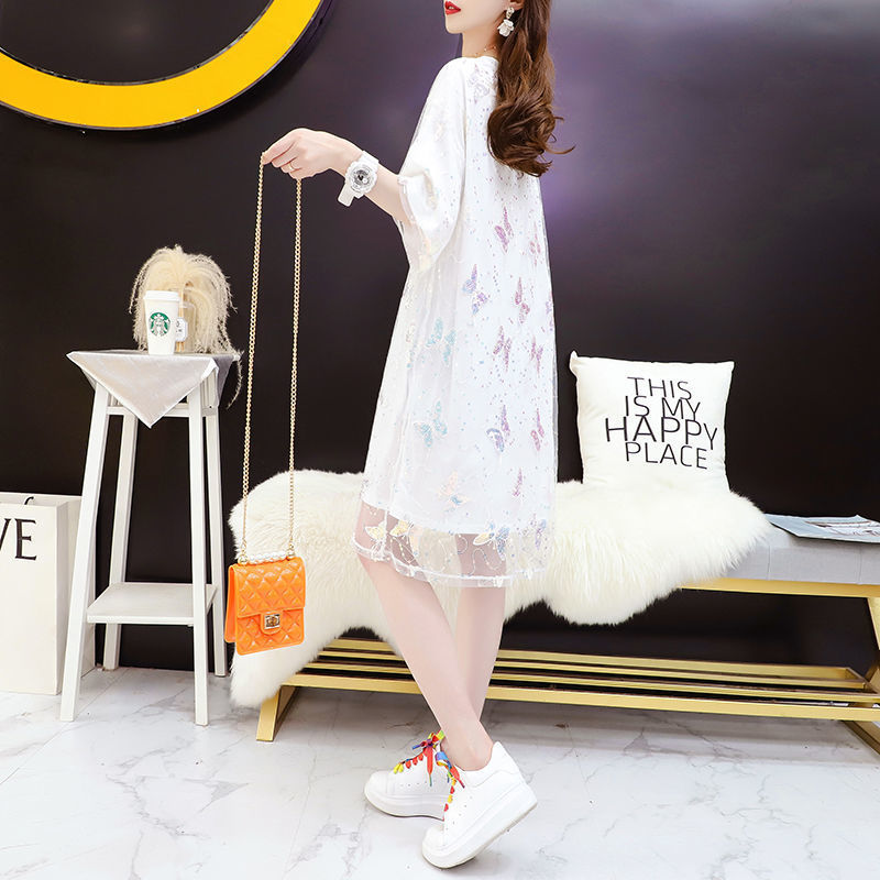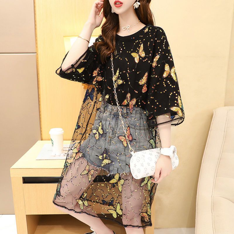 Mesh see-through fake two-piece butterfly short-sleeved T-shirt