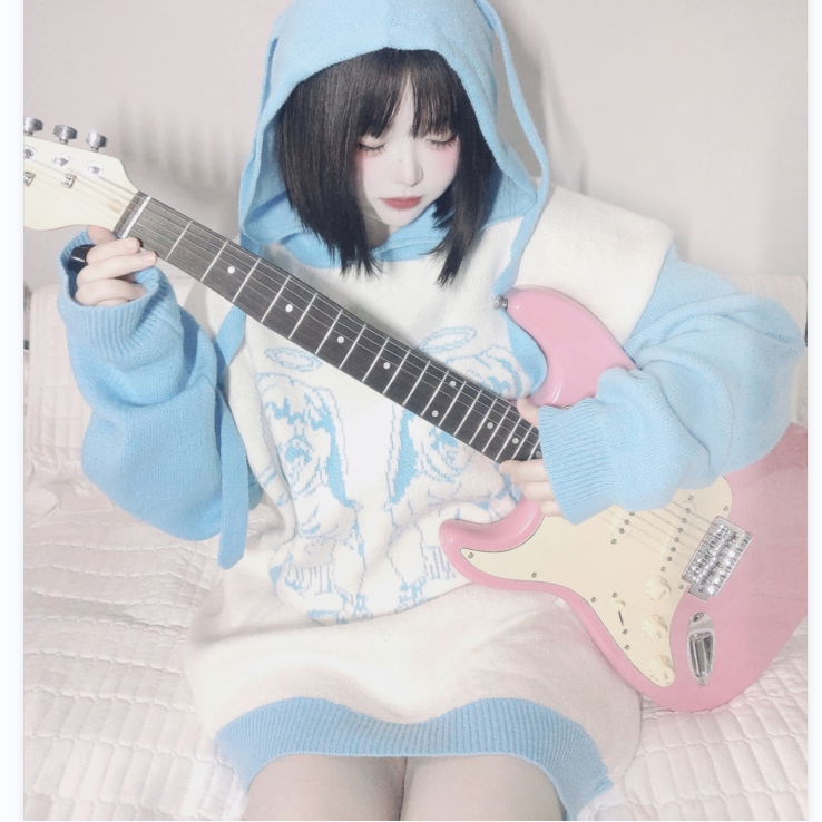 Original Cartoon Color Block Sweater Knit Hoodie