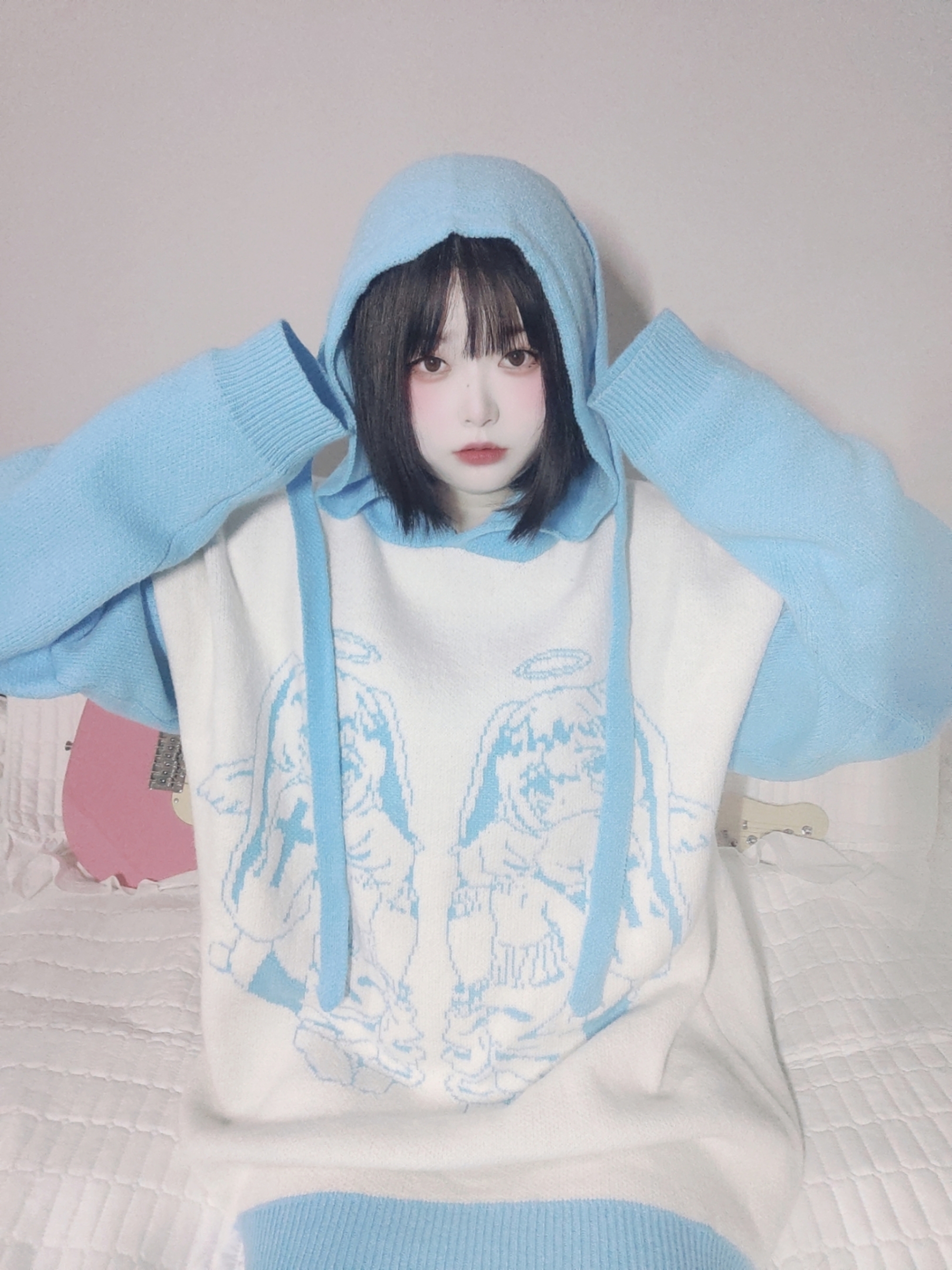 Made of: Cotton, Color: sky blue, size: one size, Bust 148cm, Sleeve Length 70cm, Length 80cm,