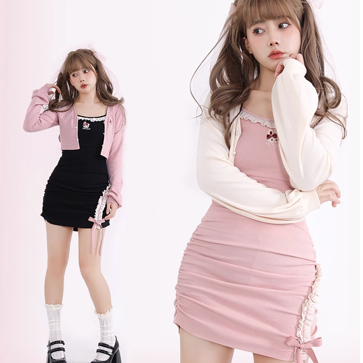 Sweet Embroidered All-Match Cardigan Slip Skirt Dress