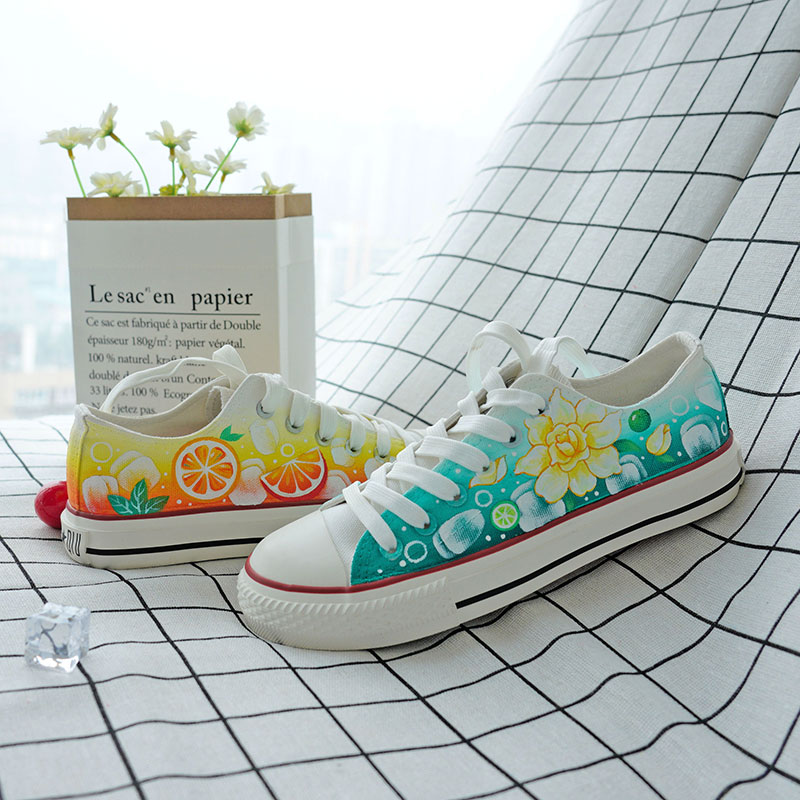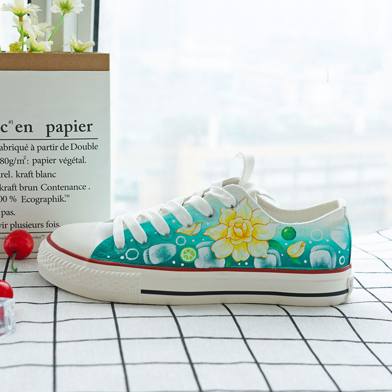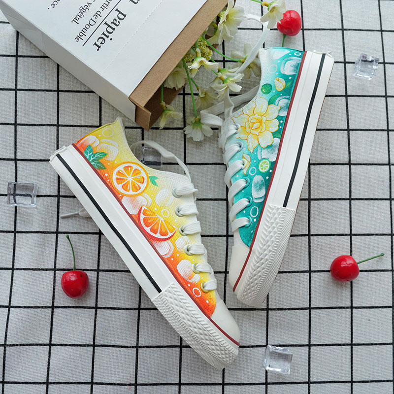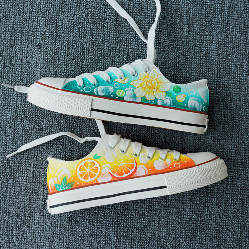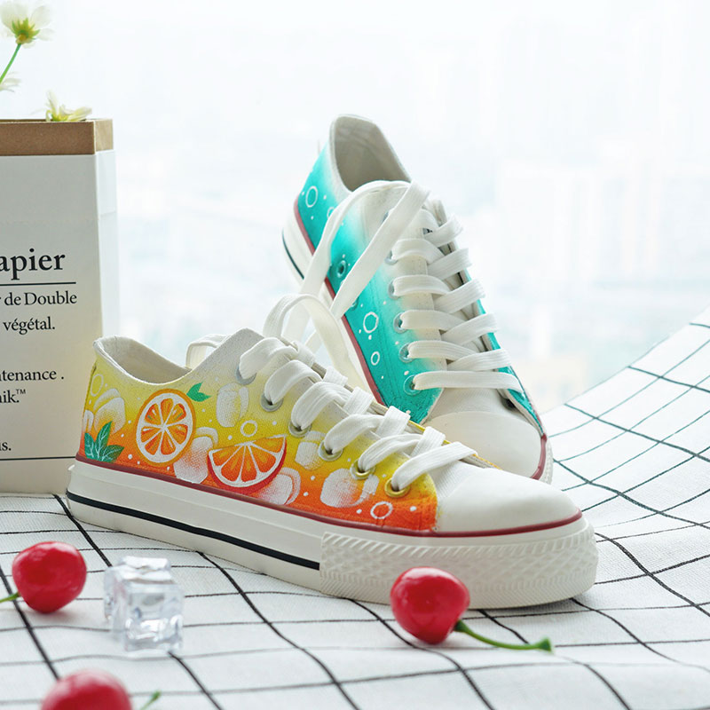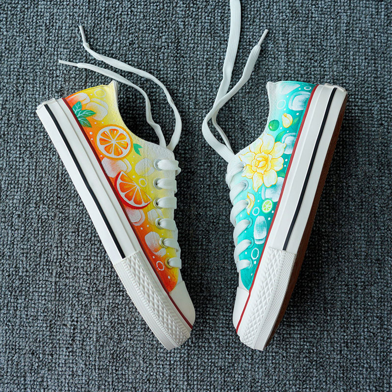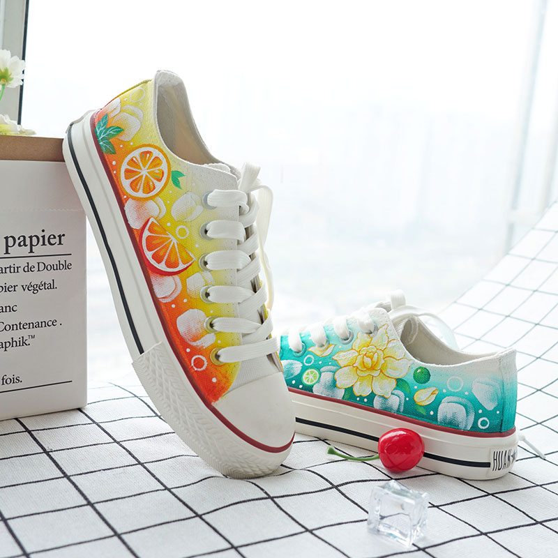 New style canvas shoes citrus gardenia hand-painted flat bottom personality graffiti lace-up sneakers