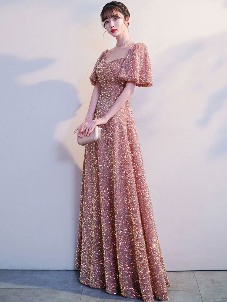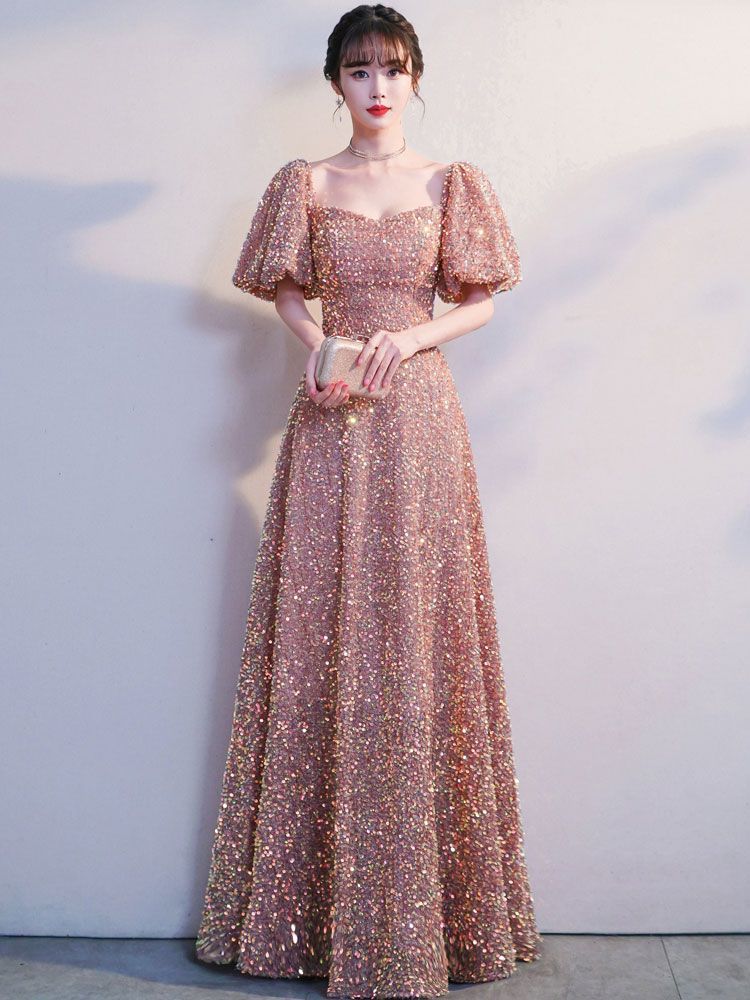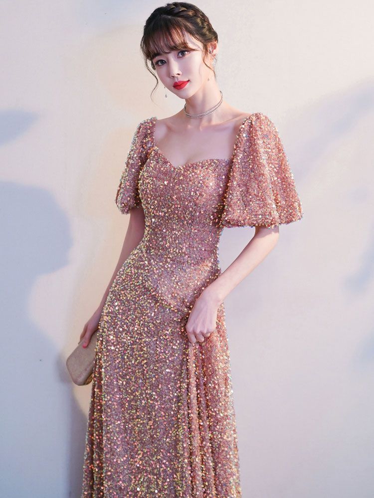 New evening dress champagne color sequined high-end light luxury niche dress skirt